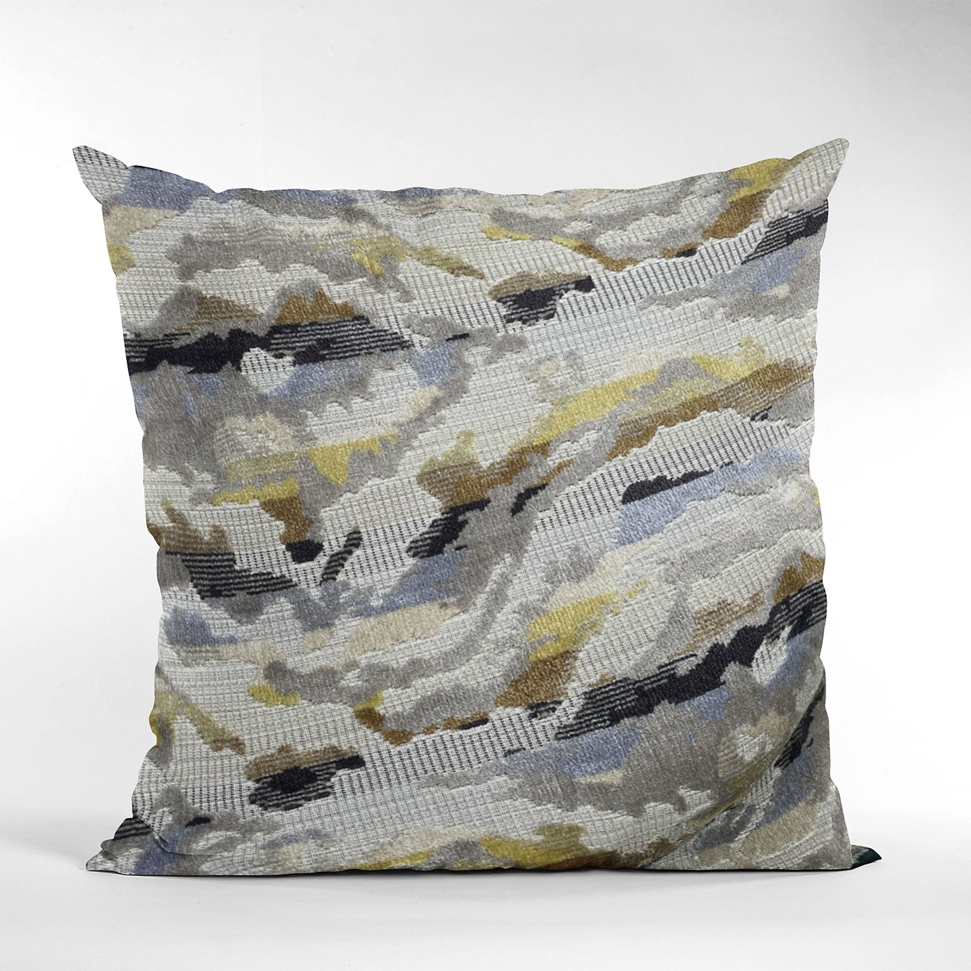 The Plutus Velvet Crest Pillow features a sophisticated color palette of black, gray, and citrine, making it a versatile piece that complements various decor styles. The luxurious velvet fabric adds a touch of elegance, while the unique Ikat pattern brings a modern twist to traditional design elements. Each pillow is handmade, ensuring that you receive a one-of-a-kind piece that stands out in your home.