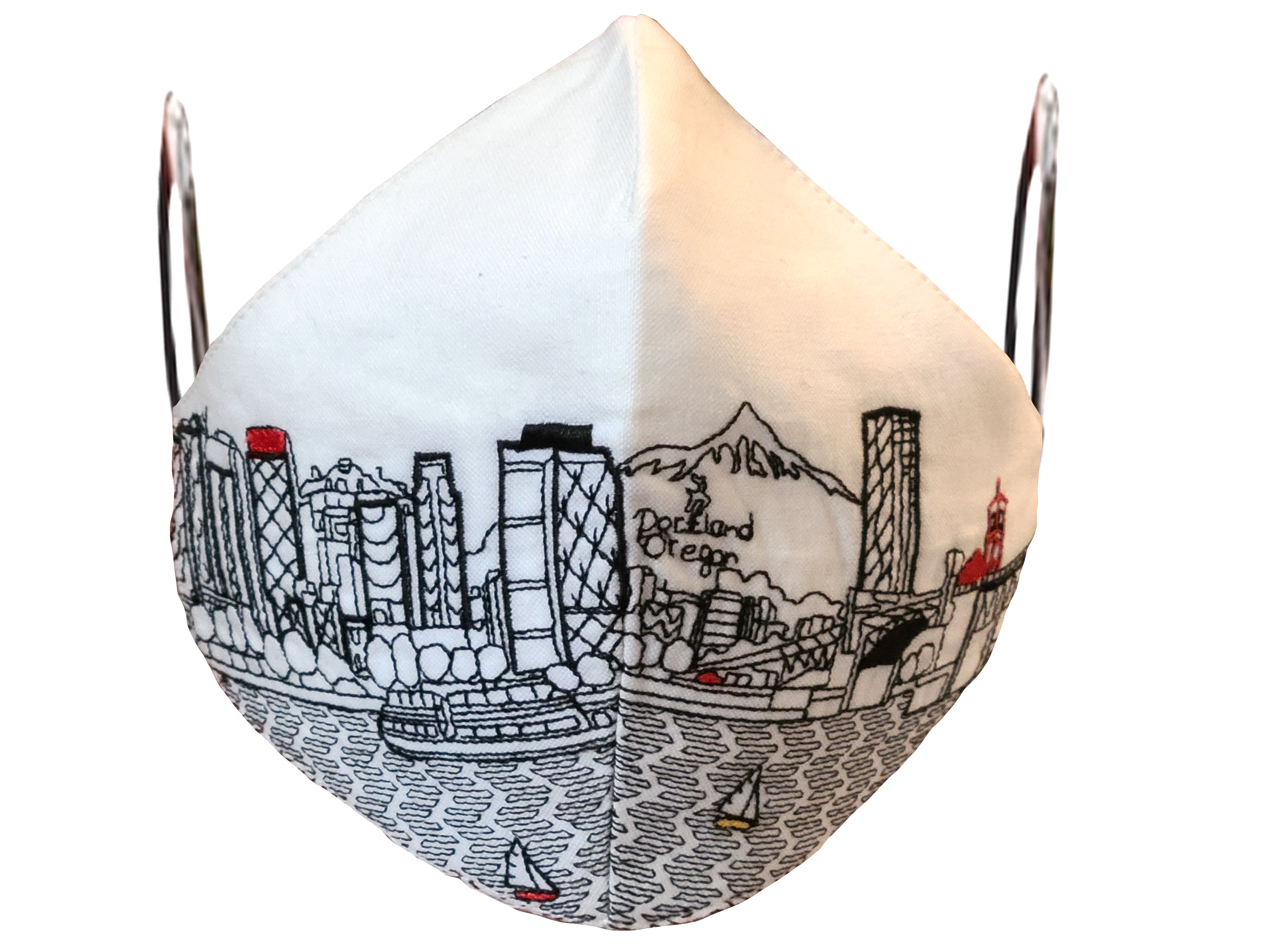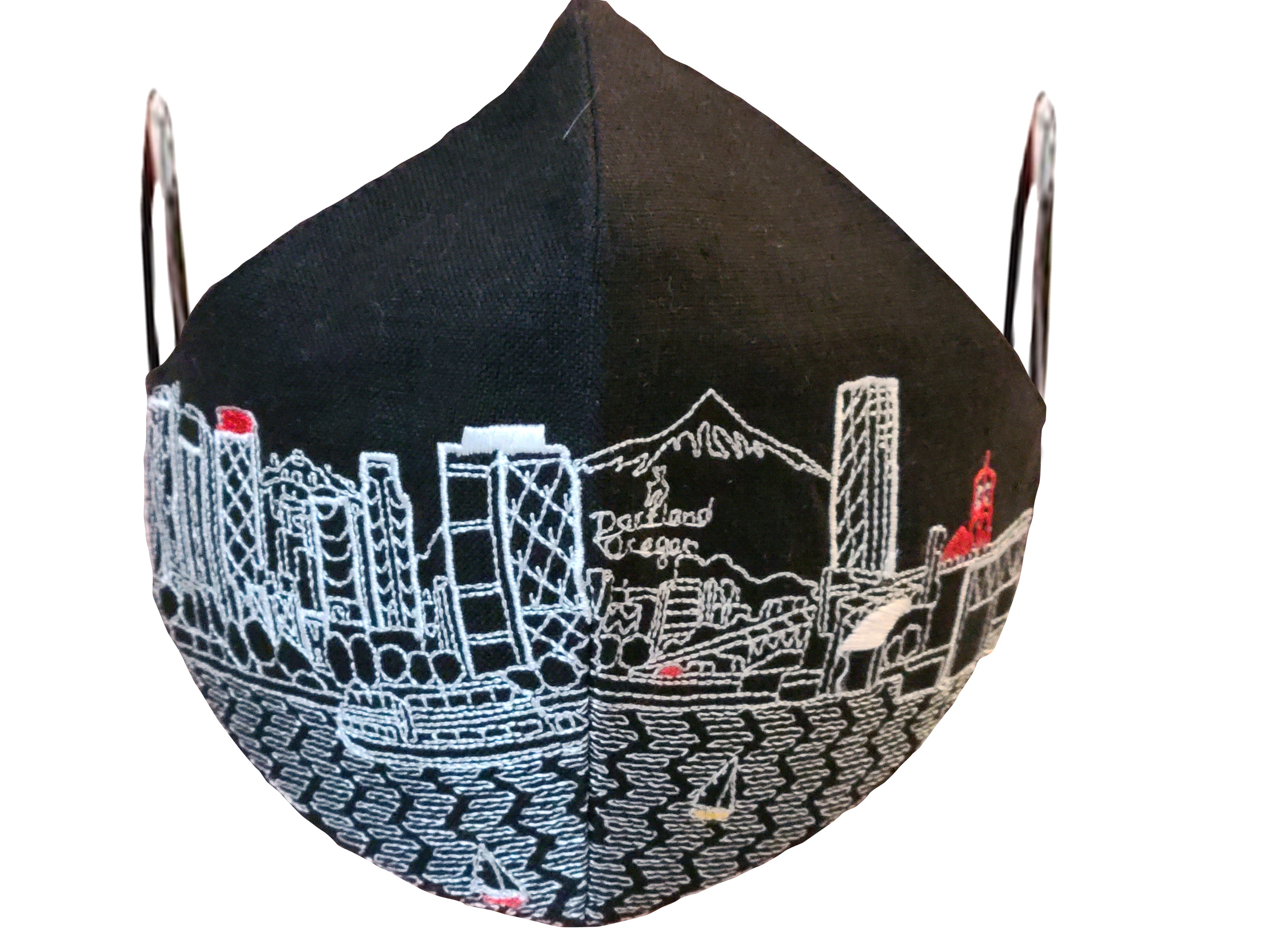 This face mask is crafted from high-quality linen and cotton, ensuring a soft and breathable experience. The outer layer features an intricately embroidered design that highlights the iconic skyline of Portland, making it a standout piece in your collection. The inner lining is made from soft cotton, providing additional comfort against your skin, especially during extended wear.