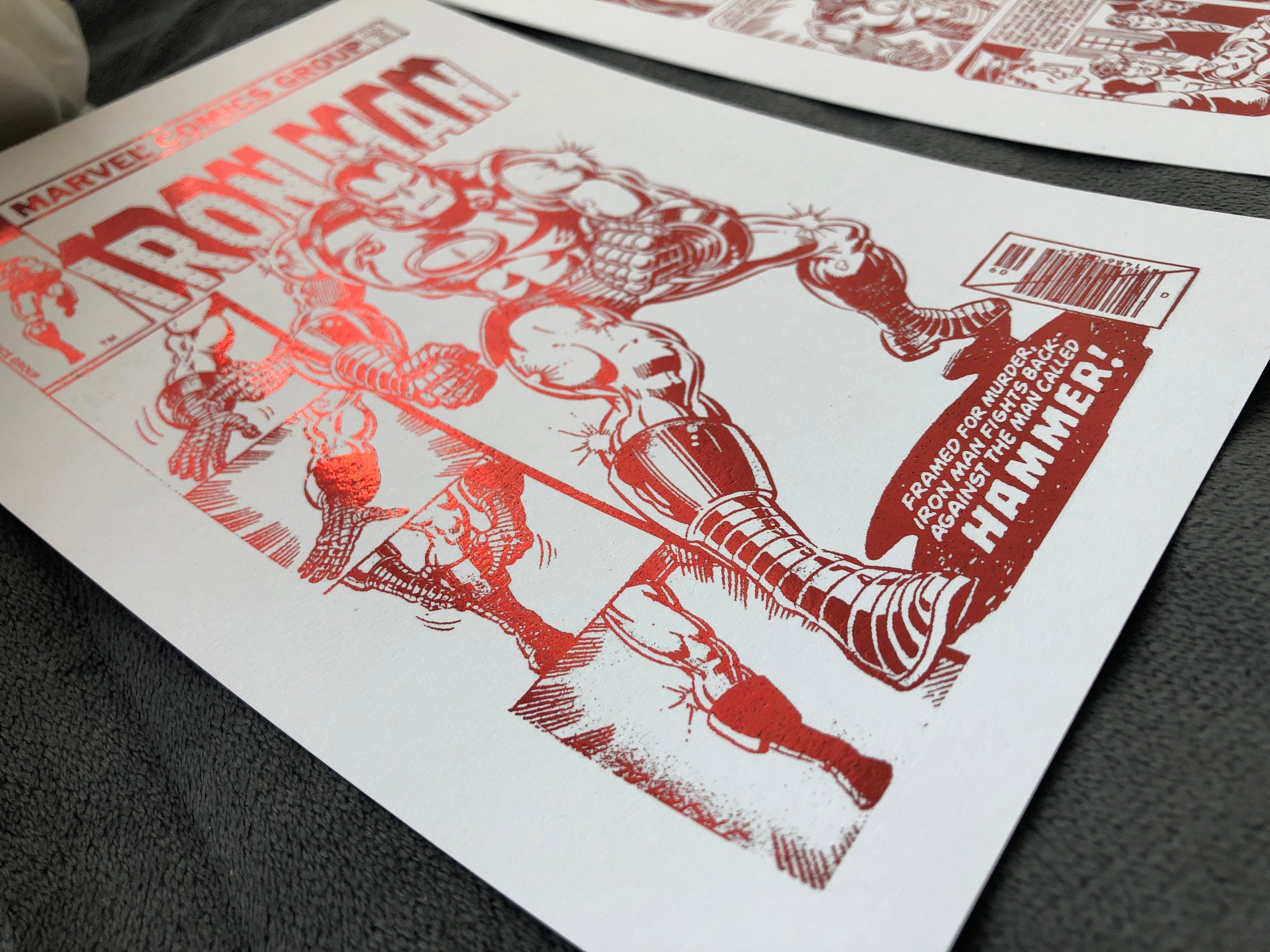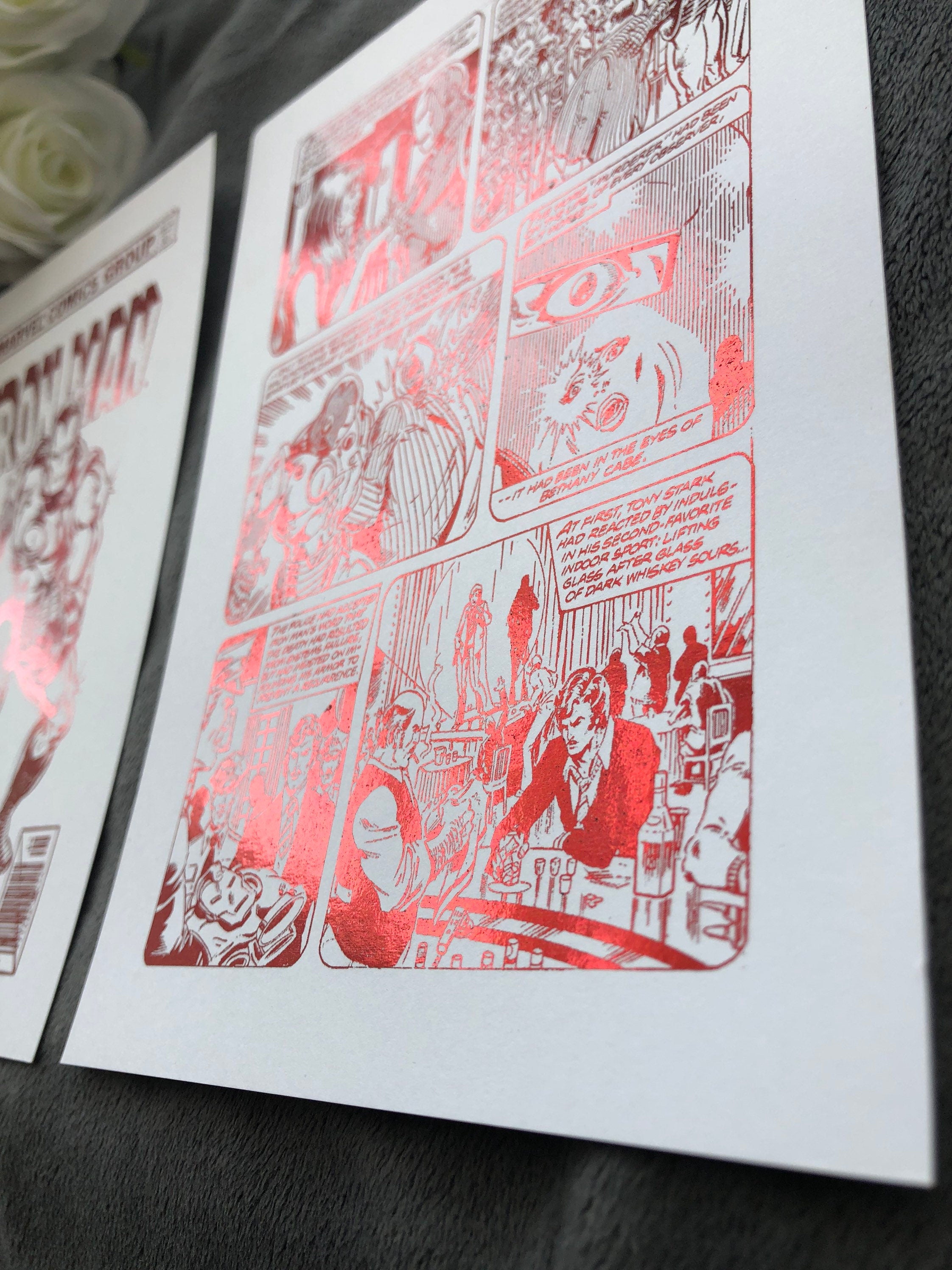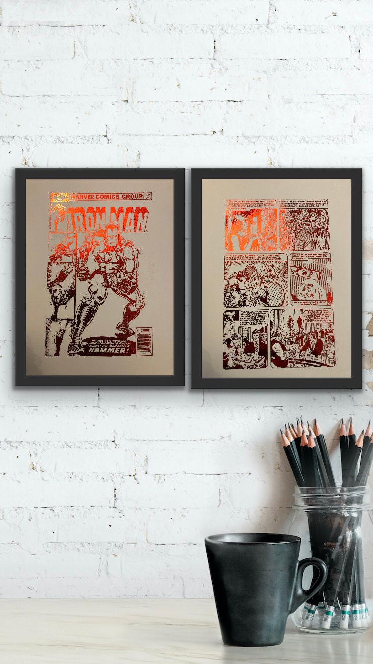 In summary, the Set of 2 Iron Man Comic Cover & Comic Strip Foil Prints is a must-have for any Marvel fan or art lover. With their high-quality materials, stunning designs, and versatile sizes, these prints are sure to enhance your decor and bring a touch of superhero magic to your space.