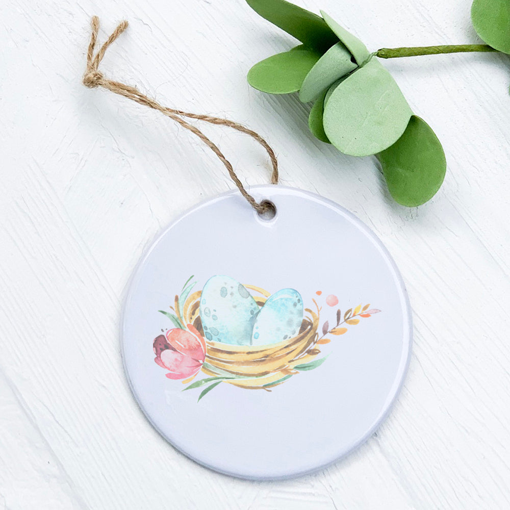 Our Spring Birds Nest ornament is made from premium porcelain, ensuring durability and a beautiful finish. The one-sided printing utilizes a sublimation method, which means the vibrant design is embedded into the material, preventing it from peeling or fading over time. This guarantees that your ornament will maintain its stunning appearance for years to come.