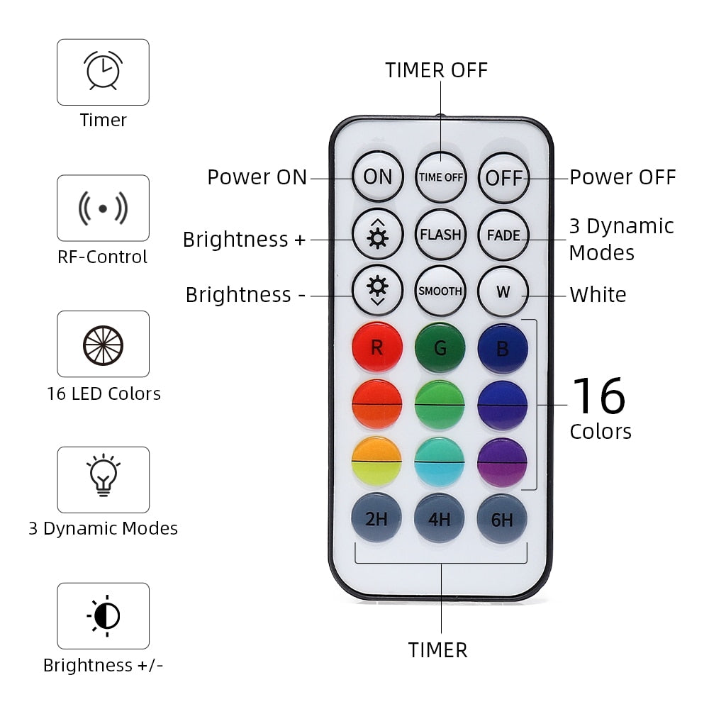 One of the standout features of our submersible lights is the advanced radio frequency (RF) remote control. Unlike infrared (IR) remotes that require direct line-of-sight, our RF remote allows you to control multiple lights from any direction, making it incredibly convenient. You can easily switch between colors, adjust brightness levels, and set timers for 2, 4, or 6 hours of operation.