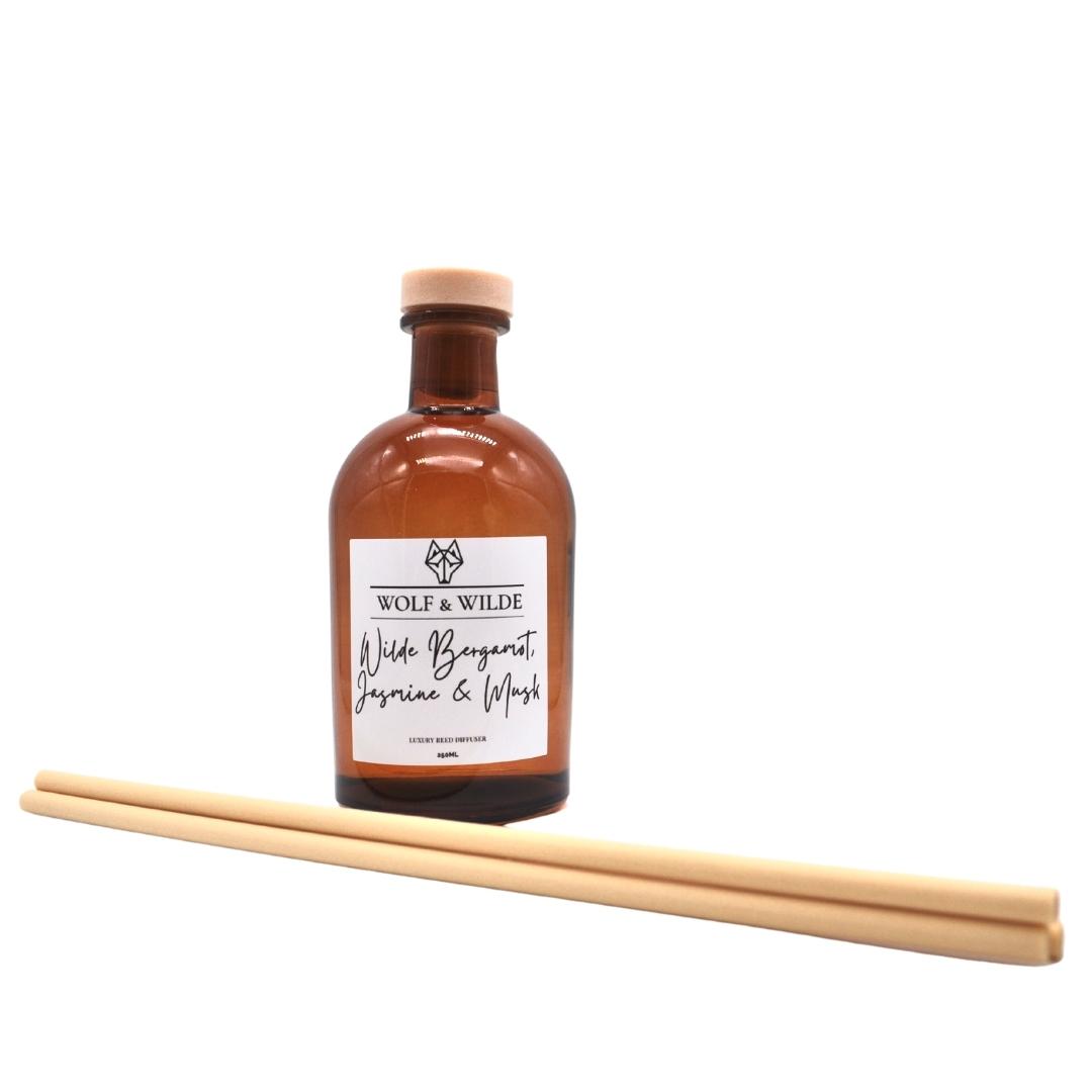Transform your living space with the Wilde Bergamot, Jasmine & Musk Apothecary Reed Diffuser. This exquisite 250ML diffuser is designed to elevate your home ambiance with its captivating fragrance profile. The unique apothecary style bottle not only adds a touch of elegance to your decor but also ensures that the scent is released gradually, providing a long-lasting aromatic experience.