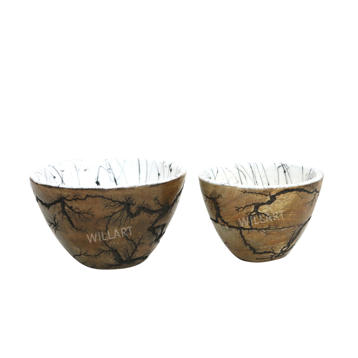 Introducing our exquisite Wooden Salad Bowl set, a perfect blend of functionality and aesthetic appeal. Crafted from 100% natural mango wood, these bowls are not only a beautiful addition to your serveware but also incredibly practical for everyday use. The unique hand-painted interiors and designer carvings on the exterior make each bowl a work of art, ensuring that your dining experience is elevated to new heights.