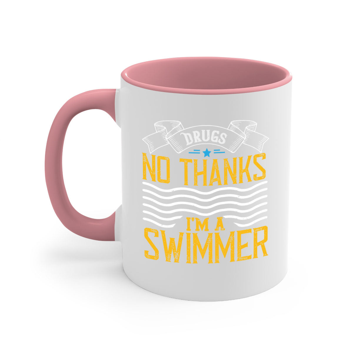 The 'No Thanks I'm a Swimmer' mug features a two-tone design that adds a pop of color to your kitchen or office. Choose from five different color options to match your personal style or mood. The colored handle and interior create a striking contrast against the glossy white exterior, making it a stylish addition to your drinkware collection.