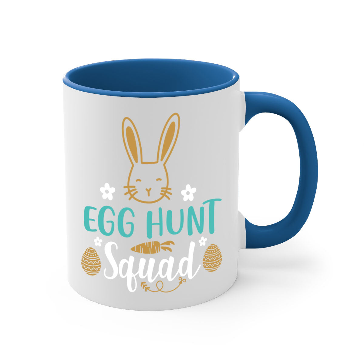 The Egg Hunt Squad 94# Mug features a two-tone design that adds a pop of color to your drinkware collection. Choose from five different color options to match your personal style or to coordinate with your Easter decor. The colored handle and interior create a striking contrast against the glossy finish, making this mug not just functional but also a stylish accessory.