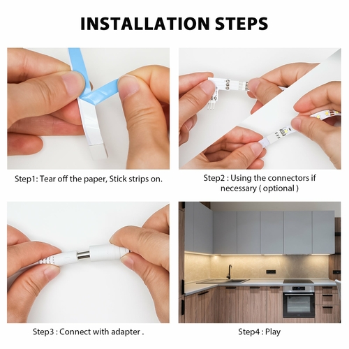 All of our LED strips come with a peel-and-stick 3M adhesive backing for a durable, permanent fix.