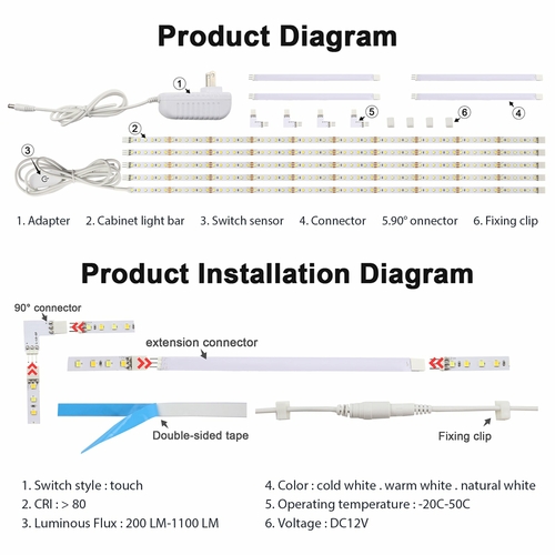 Including a 12V DC power supply, 4 Pre-Cut 20 Inch LED Strip lights, 4 plugs and play extension wires, 2 adhesive-backed wire clips, and 4 flip components to keep things neat. Suitable for TV backgrounds, living rooms, bedrooms, kitchens, cabinets, or behind your computer screen to bring your video games to life!