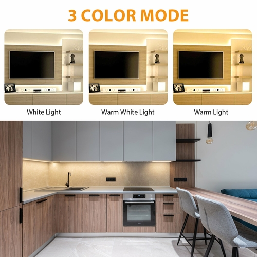 Ultra-bright LED strip, solid color (white and yellow or a mixture of the two) provides 1500 lumens, long press to control the brightness of the strip, the brightness range is 200-1500 lumens.