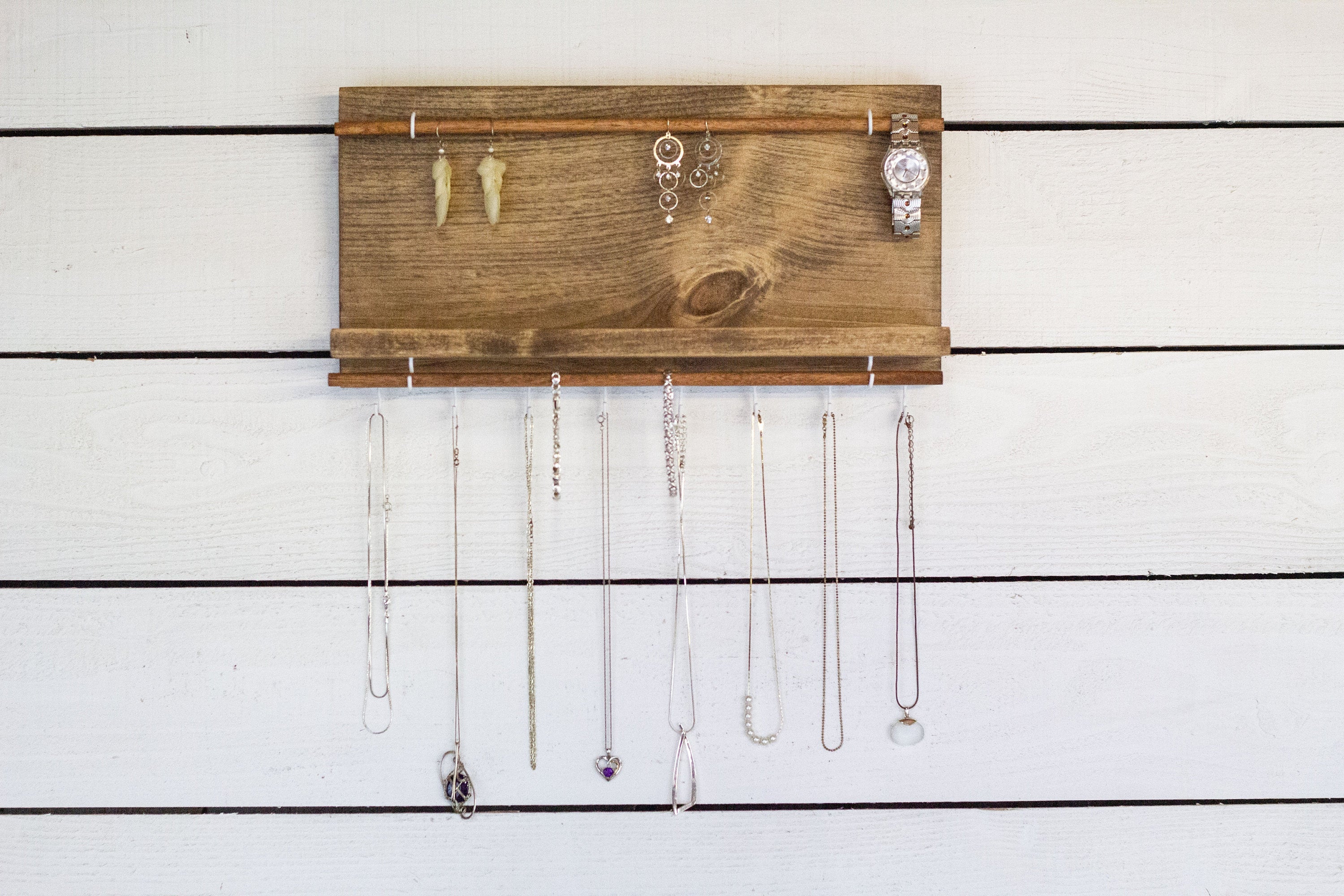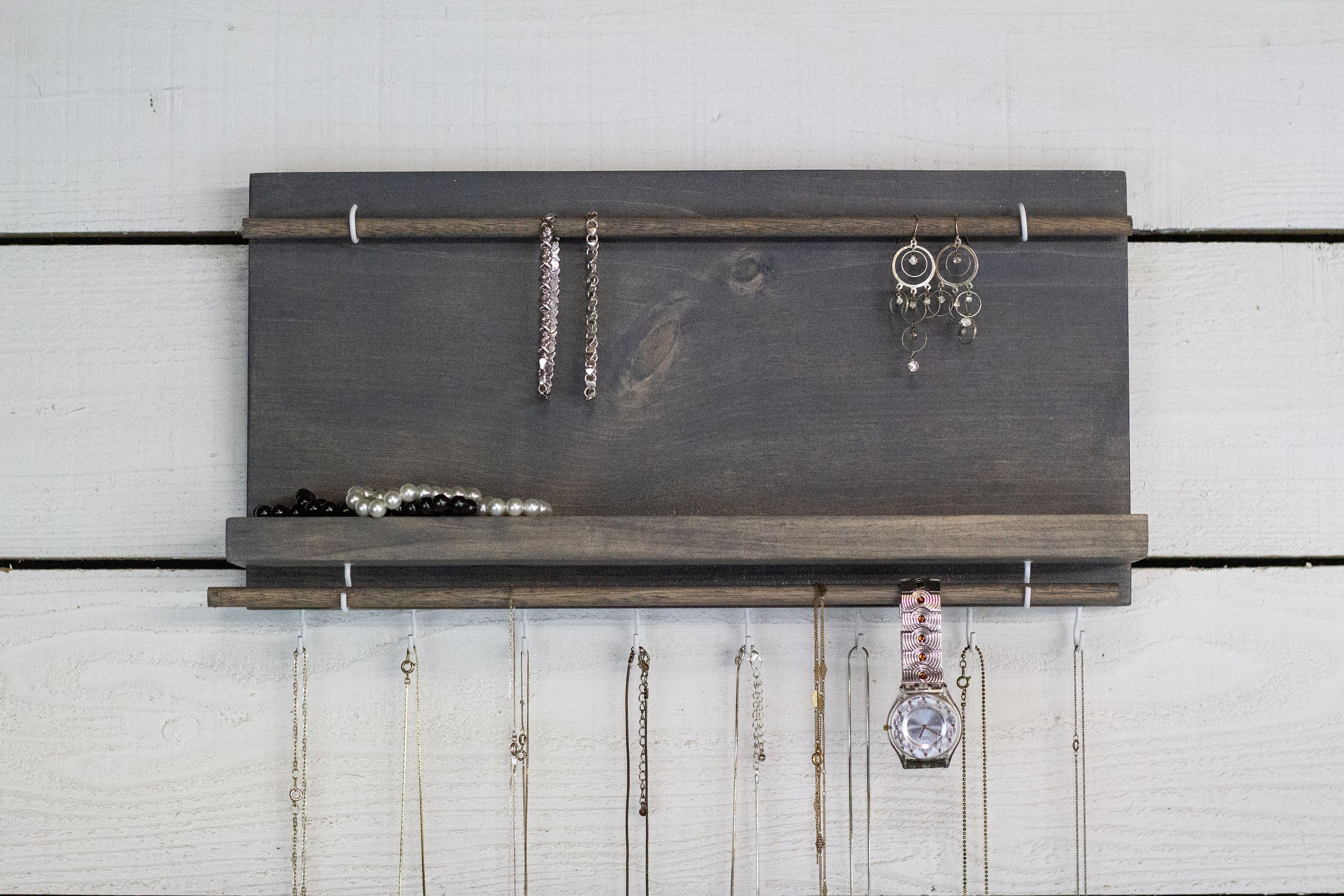 In summary, our Wall Mounted Jewelry Display with Shelf is the perfect blend of style and functionality. With its handmade quality, beautiful stain options, and easy installation, it is an ideal choice for anyone looking to enhance their jewelry organization. Invest in this stunning display today and transform the way you showcase your jewelry collection.