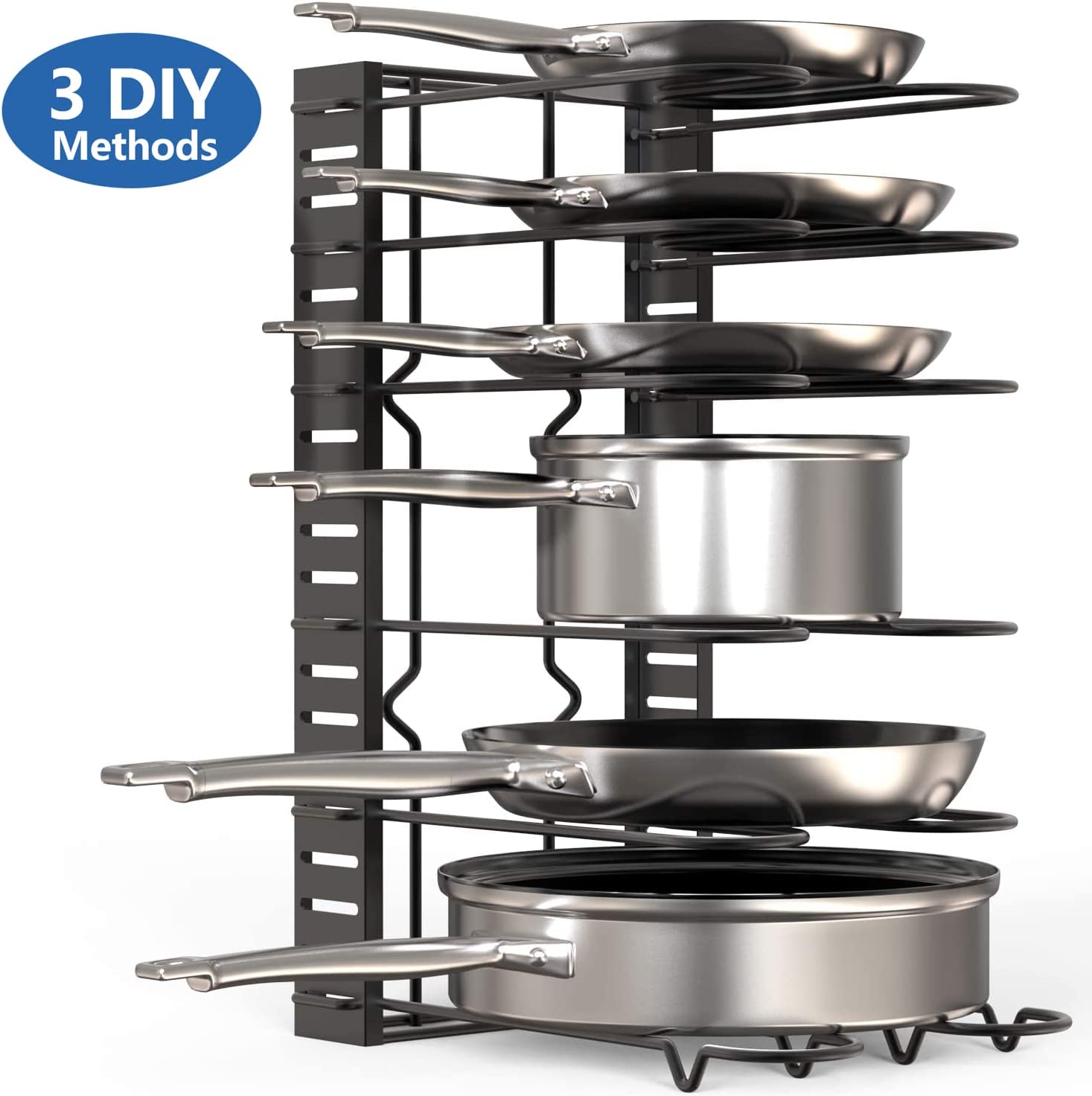 8 Pots and Pans Holder Adjustable Organizer Under Cabinet (Upgraded Version)