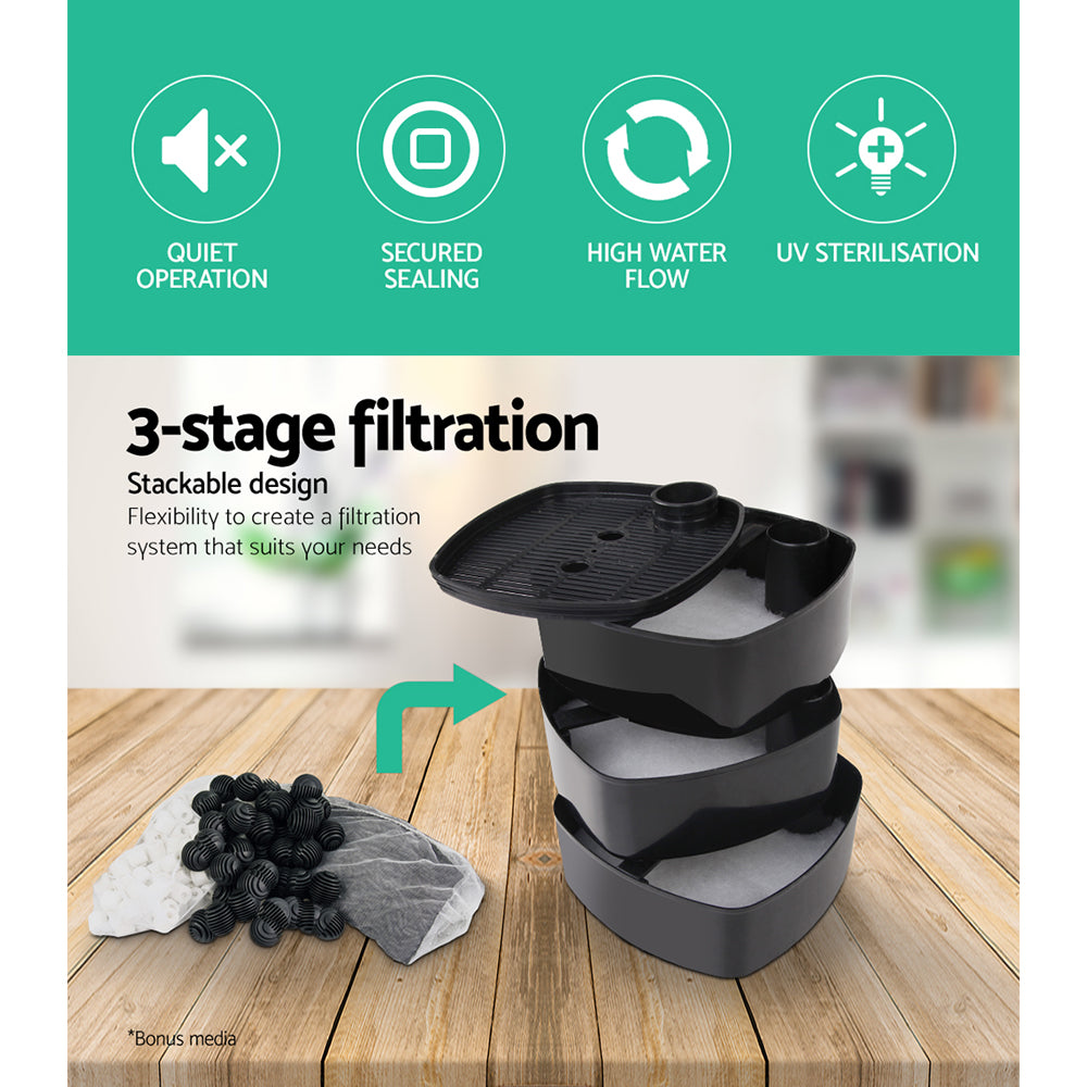 The Giantz Aquarium Filter employs a 3-stage filtration process that effectively removes impurities and toxins from your aquarium water. This multi-level approach allows you to customize your filtration system according to your specific needs. You can use all three tiers or select the ones that best suit your aquarium setup. The filter comes with bonus media, including bio-balls, ceramic rings, and active carbon, valued at $59, to enhance your filtration capabilities.