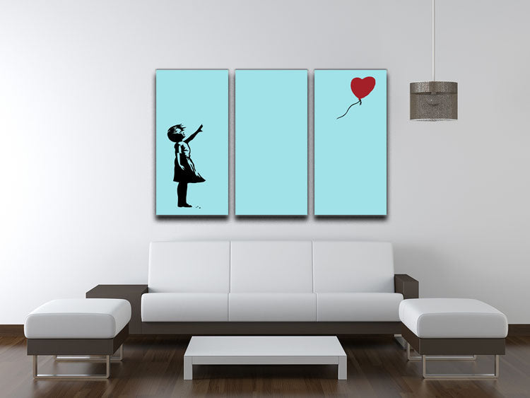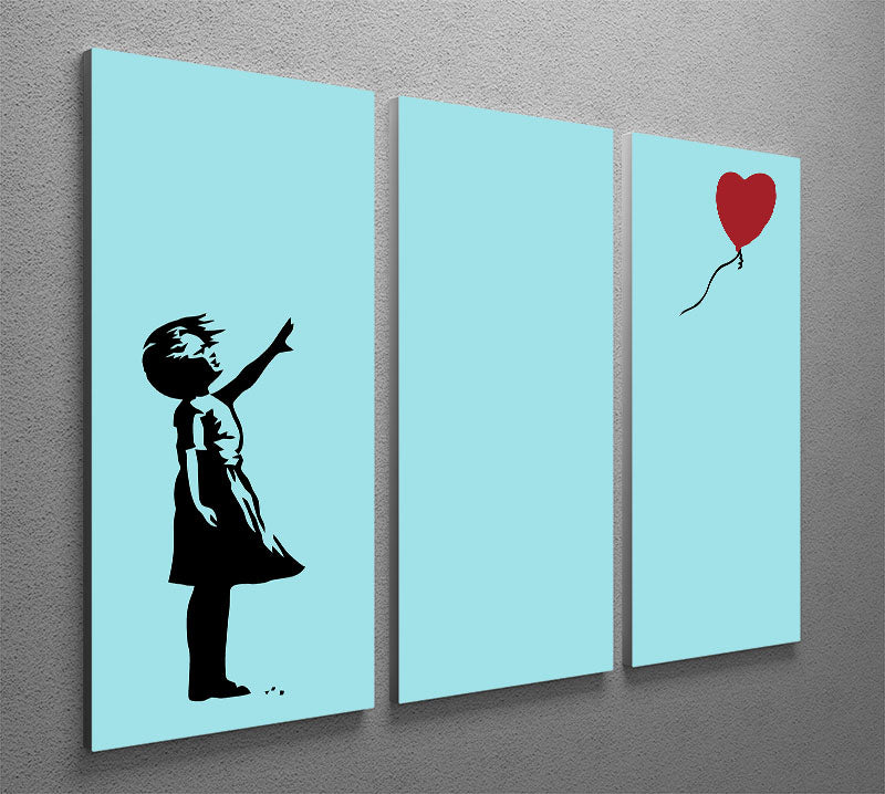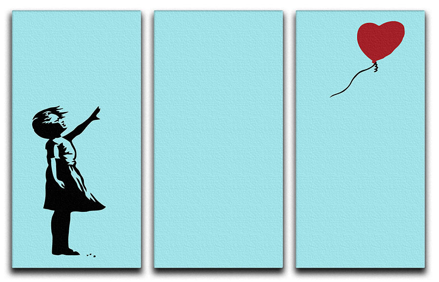 Transform your living space with the exquisite Banksy Balloon Heart Girl Light Blue 3 Split Panel Canvas Print. This stunning piece of art features the iconic Banksy design, showcasing a heart-shaped balloon held by a young girl, which symbolizes hope and innocence. The light blue background adds a serene touch, making it a perfect addition to any room. Whether you want to enhance your living room, bedroom, or office, this canvas print is sure to captivate and inspire.