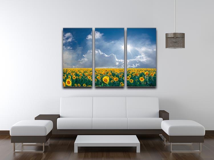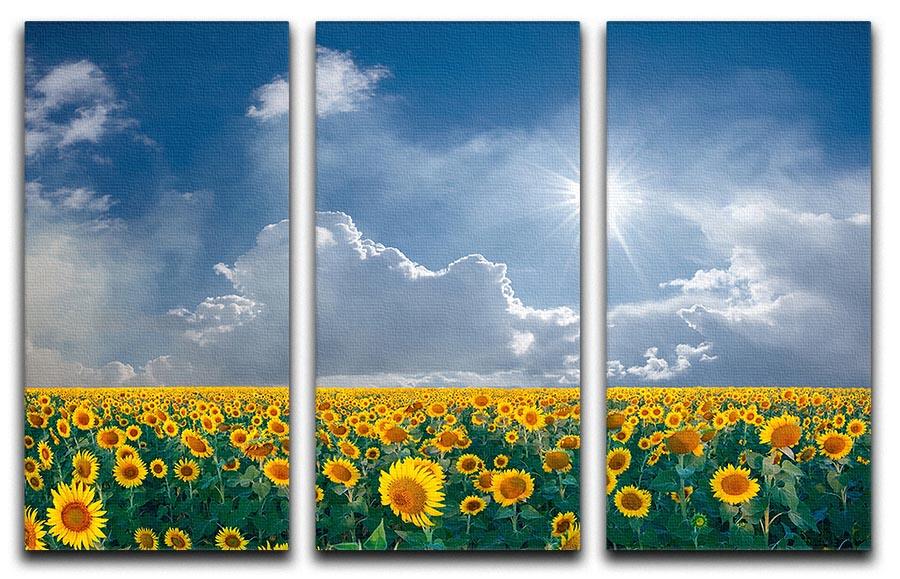 Transform your living space with our exquisite big sunflowers field and blue sky 3 Split Panel Canvas Print. This stunning artwork features a vibrant sunflower field under a clear blue sky, bringing a touch of nature's beauty into your home or office. Each set includes three high-quality canvases that together create a cohesive and captivating design, making it an ideal choice for those looking to enhance their decor.