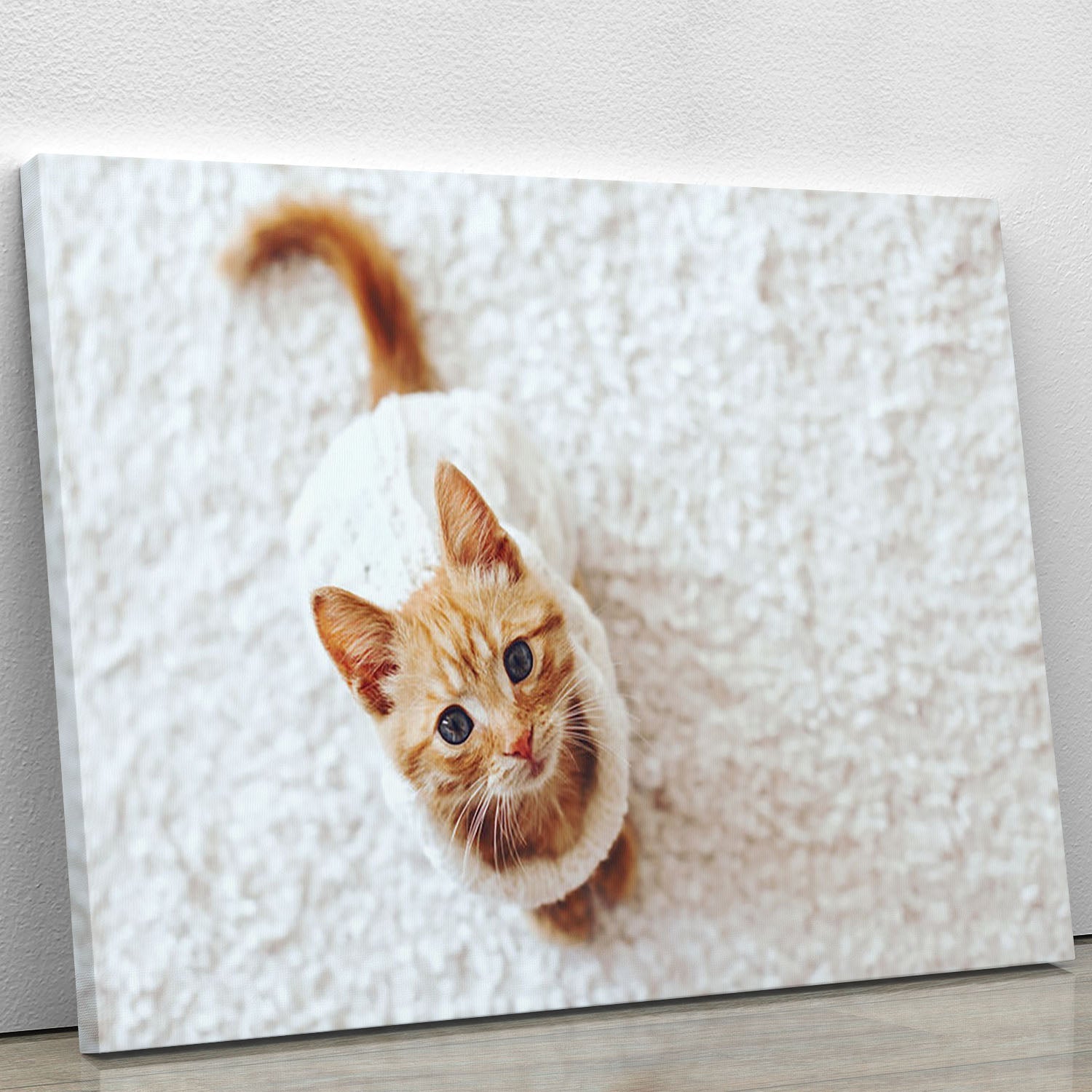 Transform your living space with our delightful cute little kitten wearing warm knitted sweater canvas print or poster. This charming artwork captures the essence of cuteness and warmth, making it an ideal addition to any room. Whether you are a cat lover or simply appreciate adorable art, this piece is sure to bring a smile to your face every time you see it.
