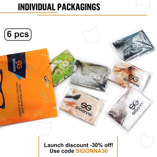 Full Print Design - Our microfiber eyeglass cleaning cloth has a unique design and has a one-sided beautiful digital drawing of cute kitties that will add smiles to your life! The package includes 6 glasses of wipe cloth, each is packaged individually which is a perfect solution for travel and long-term storage