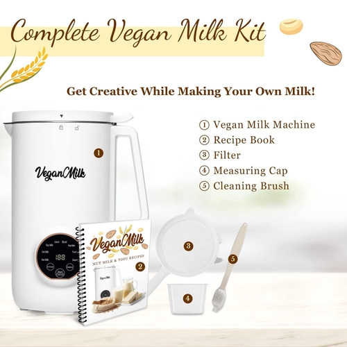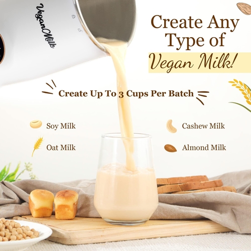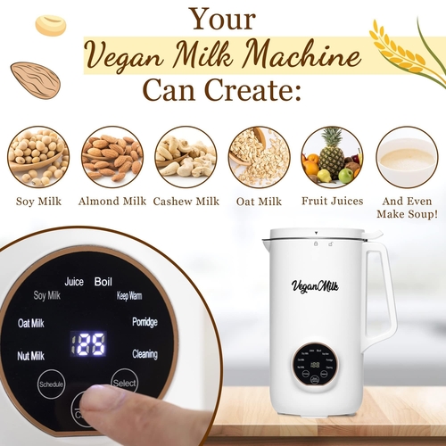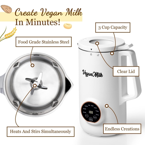 8 IN 1 PLANT BASED MILK MAKER: Your Vegan Milk Machine can create up to 3 cups of Vegan milk w/ the push of a button: Almond Milk, Soybean Milk, Cashew Milk & Oat milk! It can also be used as a Soup Maker (heats, chops & simmers simultaneously) or a Smoothie Maker!
