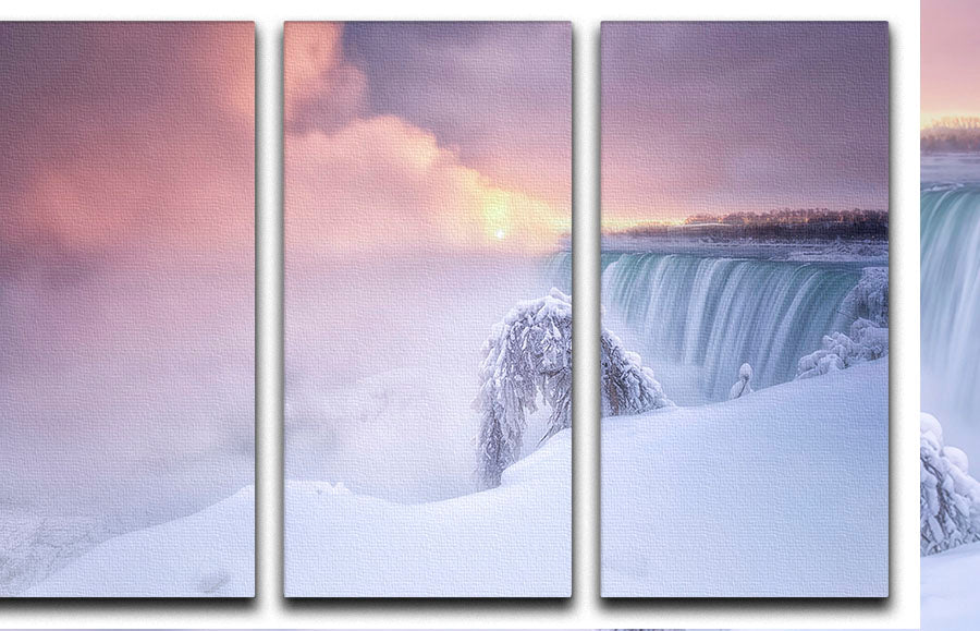 Transform your living space with the breathtaking Sunrise At Niagara Falls 3 Split Panel Canvas Print. This stunning piece of wall art is designed to captivate and inspire, making it an ideal addition to any room in your home or office. Each set includes three high-quality canvases that come together to create a cohesive and striking visual experience. Whether you are looking to enhance your living room, bedroom, or workspace, this canvas print is sure to elevate your decor.