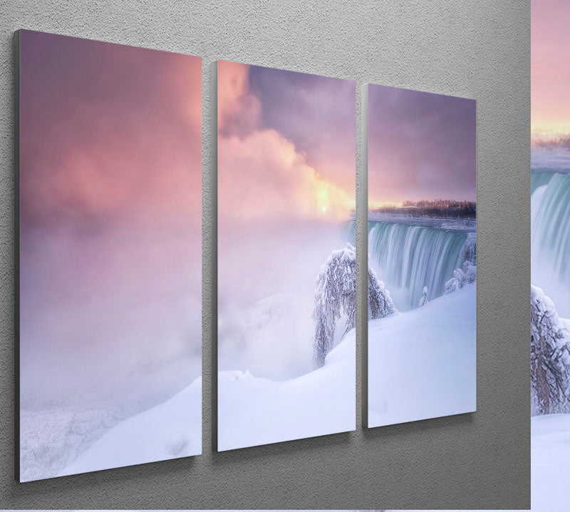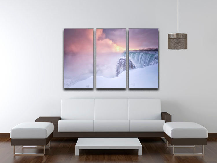 The Sunrise At Niagara Falls 3 Split Panel Canvas Print is perfect for a variety of settings. Whether you want to create a serene atmosphere in your bedroom or add a touch of elegance to your office, this artwork fits seamlessly into any decor style. The three panels can be arranged in different configurations to suit your space, allowing for a personalized touch that reflects your unique taste.