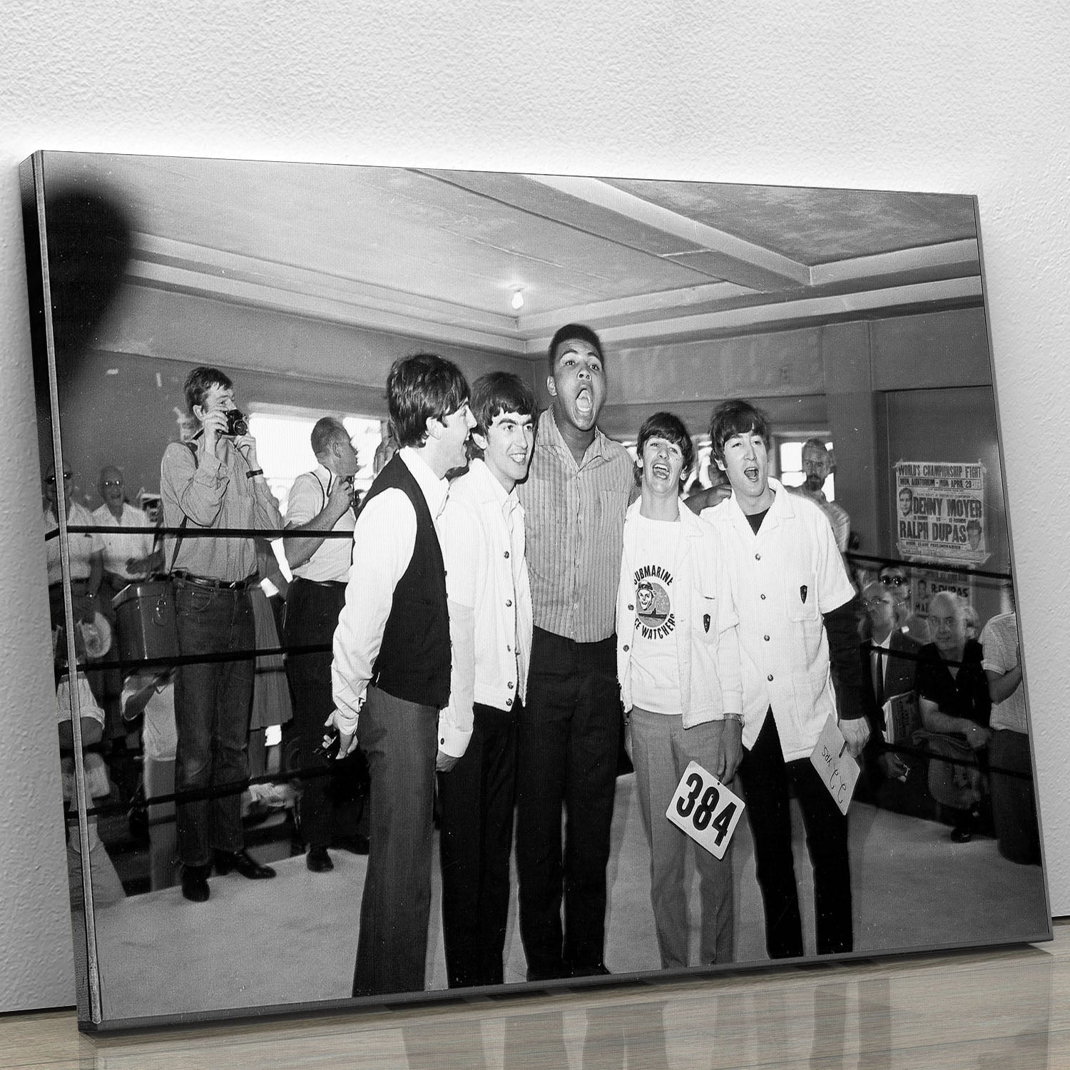 This canvas print is versatile enough to complement various interior styles, from modern to vintage. Whether you want to enhance your living room, bedroom, or office, the Beatles meet Muhammad Ali canvas print adds a touch of elegance and personality to your space. Its unique design makes it a focal point that draws attention and admiration.
