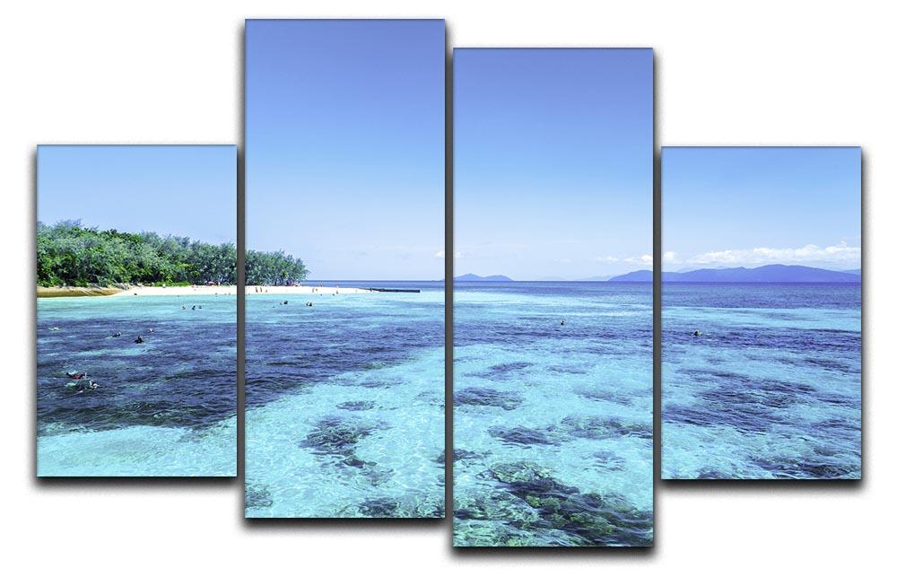 The Great Barrier Reef 4 Split Panel Canvas is an exquisite piece of art that brings the beauty of one of the world's most famous natural wonders into your home. This unique artwork is divided into four equal sections, each functioning as a separate canvas. When displayed together, these panels create a cohesive and striking image that captures the vibrant colors and intricate details of the Great Barrier Reef.