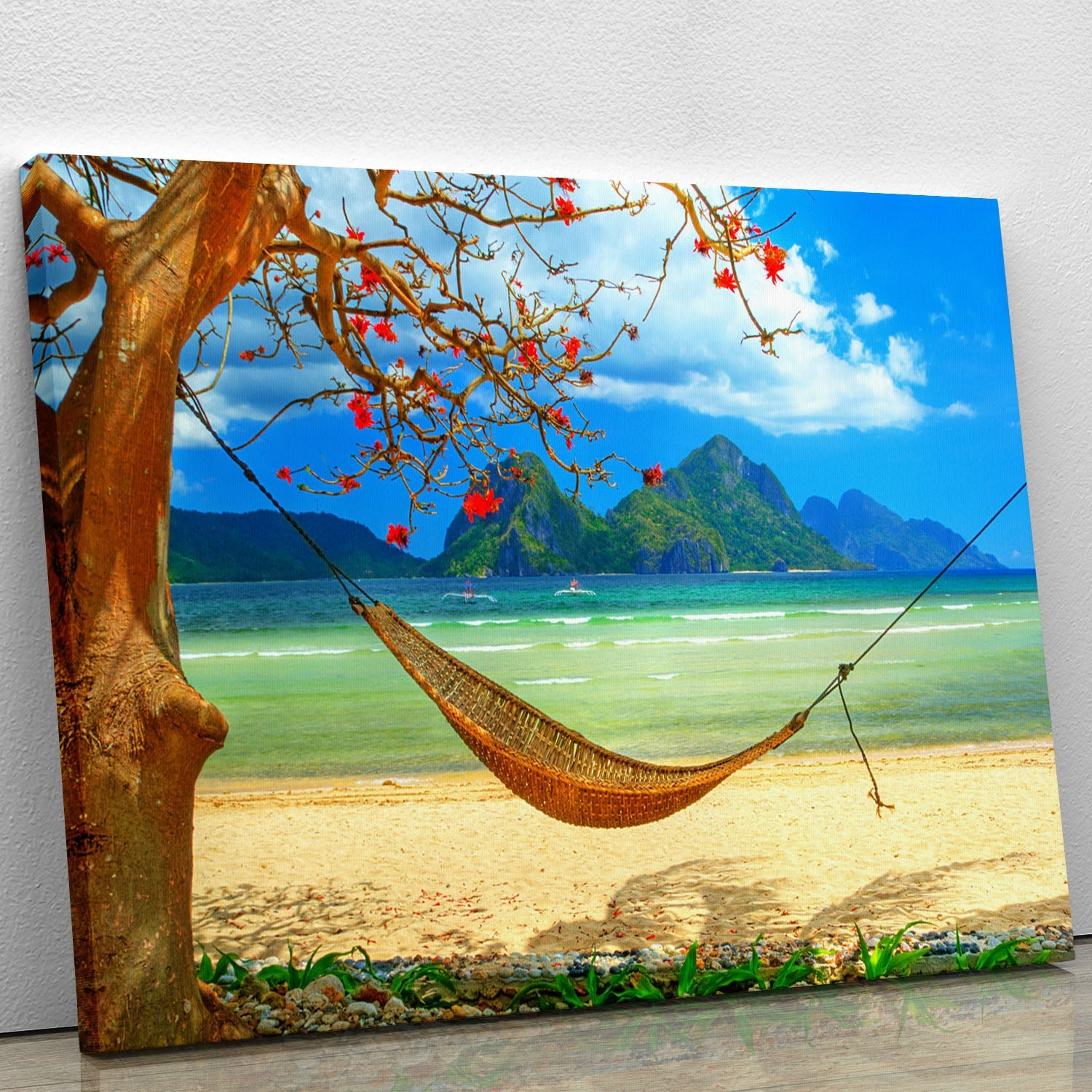 This tropical beach scene is not just a piece of art; it’s a versatile decor element that complements various interior styles. Whether your home features a modern, coastal, or bohemian aesthetic, this artwork seamlessly integrates into your existing decor. Use it as a focal point in your living room, a calming piece in your bedroom, or a motivational backdrop in your workspace.