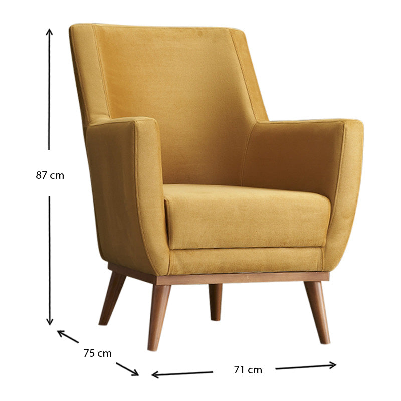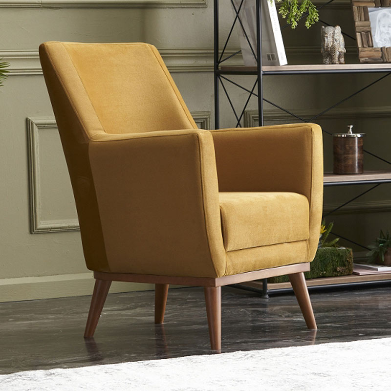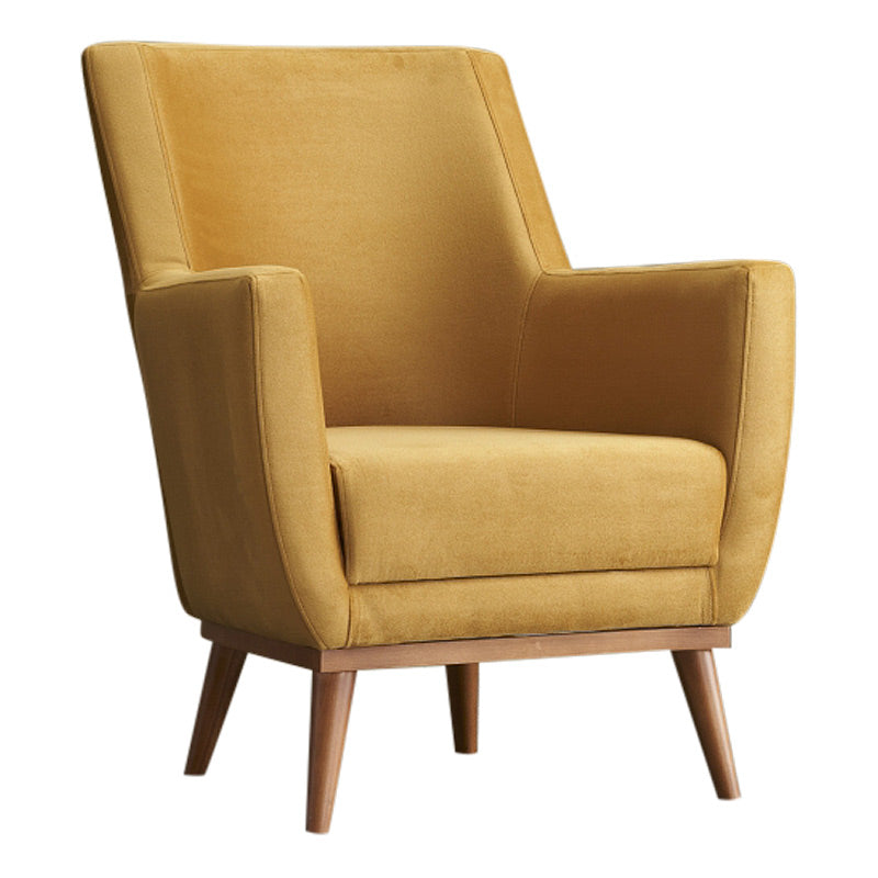 One of the standout features of the REGATA armchair is its luxurious mustard color. This vibrant hue not only brightens up your space but also complements a wide range of interior design styles. Whether your decor is modern, traditional, or eclectic, the REGATA armchair will fit right in. The natural beech wood legs, finished in a walnut shade, add an elegant touch and ensure stability and durability.