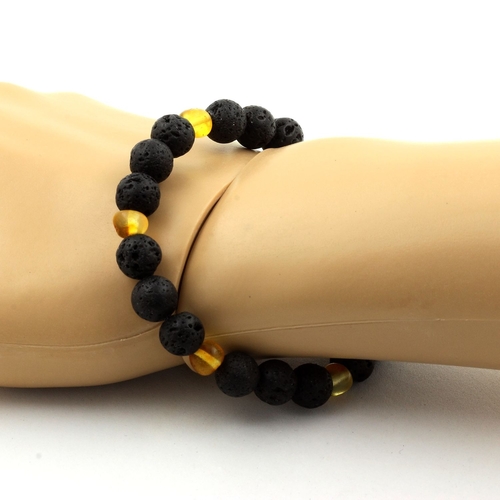 Genuine Baltic Amber + Lava Bracelet 8 mm Beads.