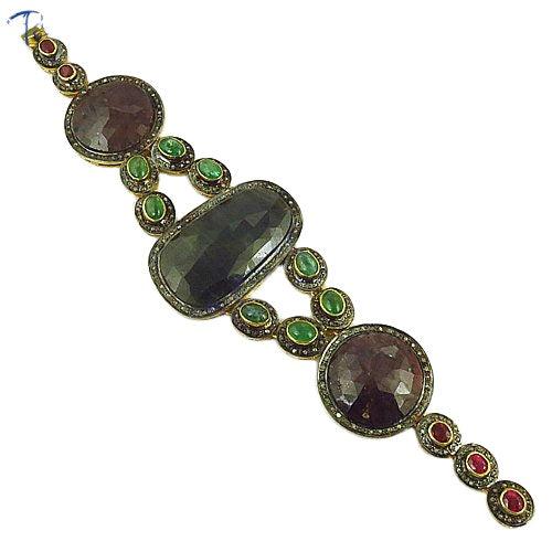 Introducing the exquisite Colorful Victorian Multi-Gemstone Silver Bracelet, a stunning piece of jewelry that embodies the perfect blend of timeless elegance and vibrant colors. This designer bracelet is not just an accessory; it is a statement piece that enhances any outfit, making it ideal for parties, special occasions, or even everyday wear. Crafted with exceptional attention to detail, this bracelet showcases the artistry and craftsmanship that sets it apart from ordinary jewelry.