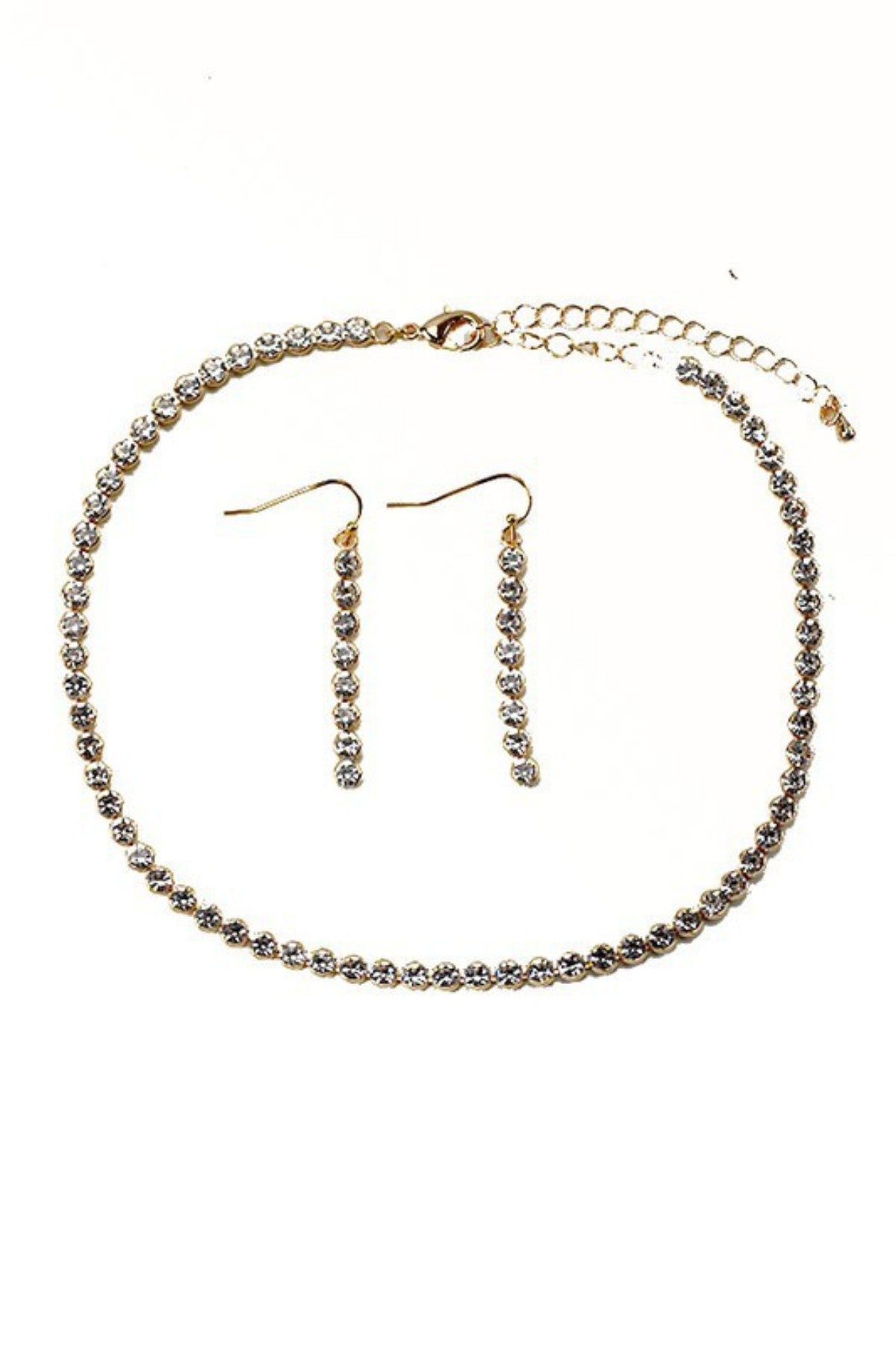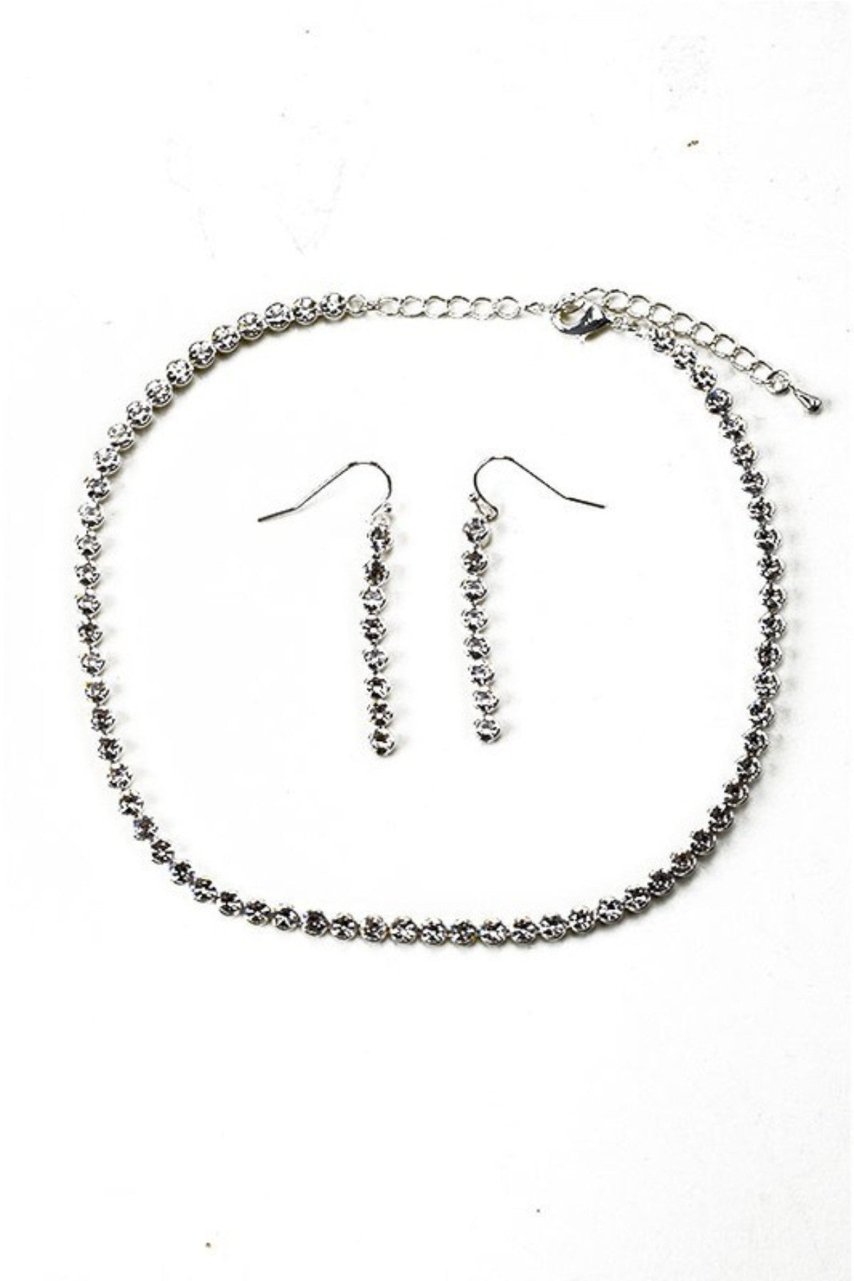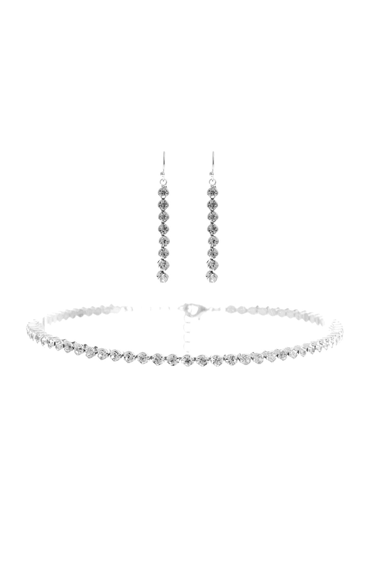 Introducing our exquisite Rhinestone Choker Necklace Set, a must-have accessory for anyone looking to add a touch of glamour to their outfit. This stunning choker features a length of approximately 11.5 inches, making it the perfect fit for a variety of neck sizes. The elegant design is adorned with sparkling rhinestones that catch the light beautifully, ensuring you stand out in any crowd.