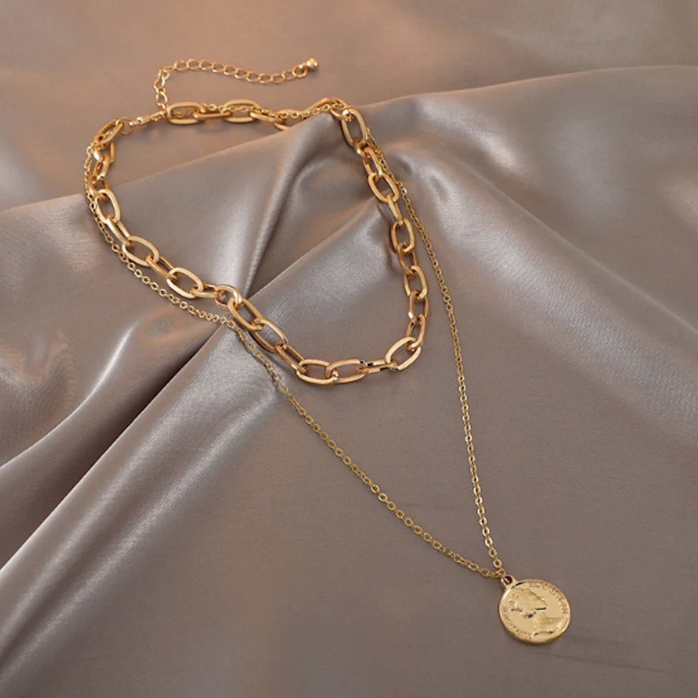 At the center of this stunning necklace is a unique coin pendant that adds a touch of sophistication and charm. The coin pendant is not only a stylish accent but also a conversation starter, making it an ideal accessory for both casual outings and formal events. Whether you're dressing up for a night out or adding flair to your everyday look, this necklace is versatile enough to suit any occasion.