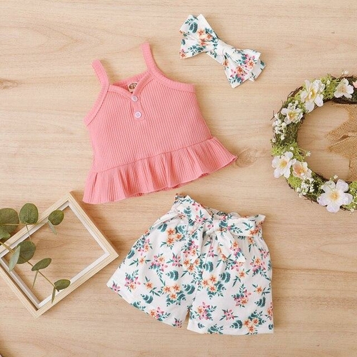 3Pcs Newborn Baby Girls Summer Clothes Cute Beach Boho Strap Ruffle