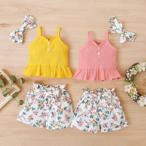 Dropship 3Pcs Newborn Baby Girls Summer Clothes Cute Beach Boho Strap Ruffle