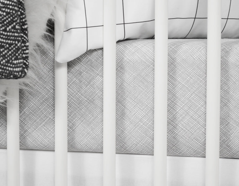 The Avi Deluxe Crib Bedding Set is crafted from high-quality materials, including 100% cotton percale fabric that is soft to the touch and gentle against your baby's skin. The unique design features sporadic lines on a neutral background, creating a playful yet controlled aesthetic that allows your baby and the room to shine. This bedding set is proudly designed and handmade in the USA, ensuring that you receive a product that is not only beautiful but also made with care and attention to detail.