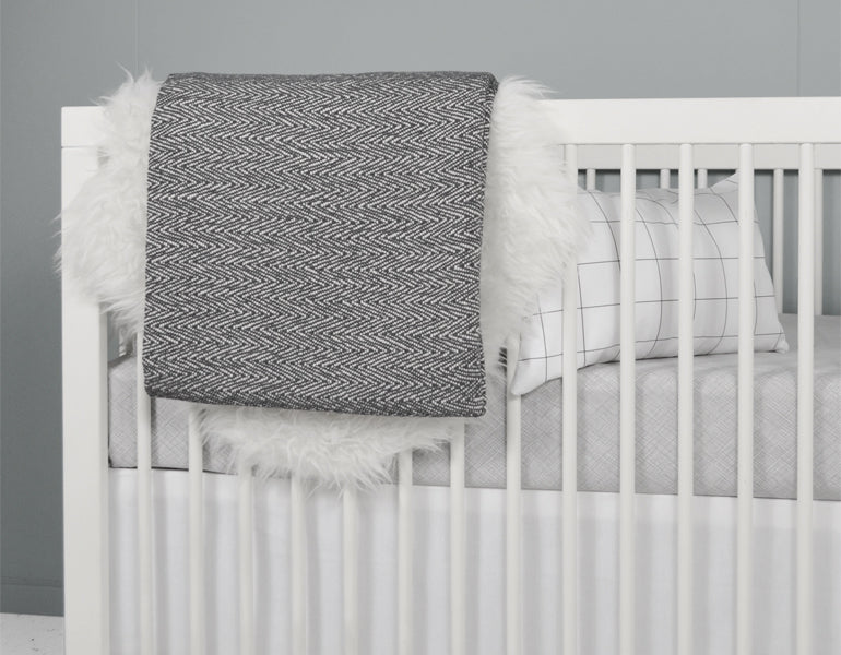 When it comes to your baby's comfort, the Avi Deluxe Crib Bedding Set does not compromise. The included Nest Baby Blanket is made from super soft cuddly minky fabric, providing a cozy and warm environment for your little one. The 100% Organic Cotton Charcoal blanket measures 50" x 60", making it ideal for parents to snuggle with their baby. The fitted crib sheet, measuring 52" x 28" with an 8" drop, fits standard size cribs perfectly, ensuring a snug and safe fit.