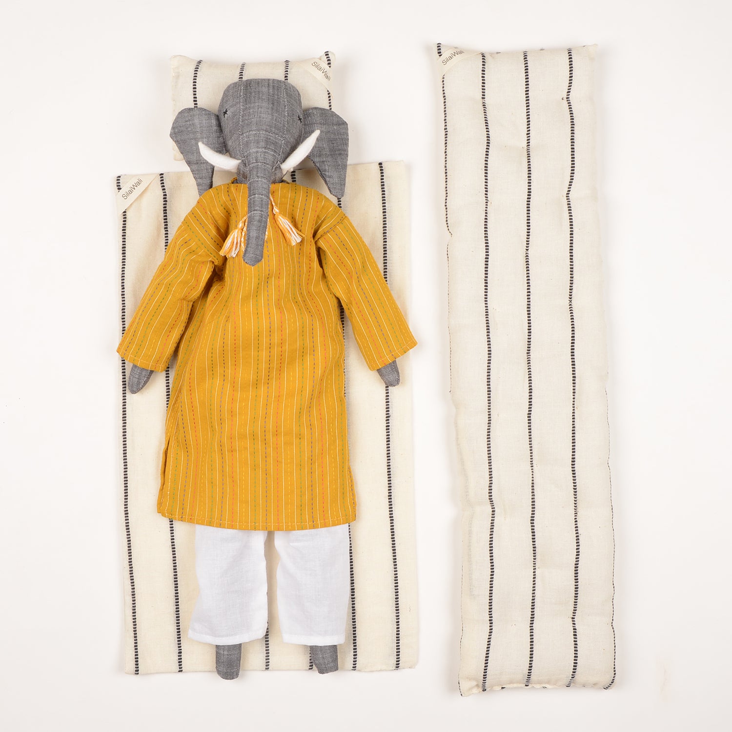 Mumba the Elephant is made from high-quality cotton, polyfill, and woollen hair, making it safe and soft for children. The bedding included with the doll is also crafted from cotton, ensuring comfort and coziness. The entire product is packaged in a smart foldable box, making it an excellent gift option for birthdays, holidays, or any special occasion.