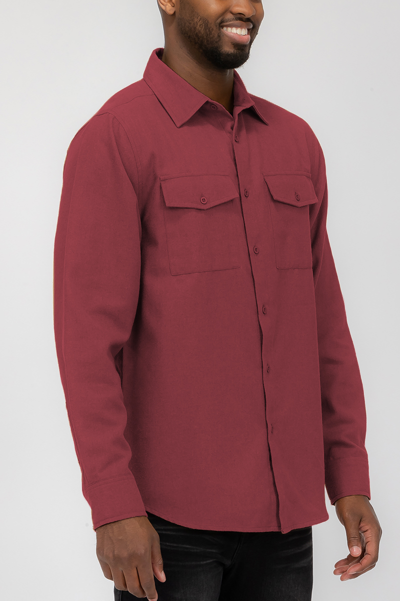 This solid flannel long sleeve shirt features a classic design that never goes out of style. The dual chest pockets with button flaps not only add a stylish element but also provide practical storage for small essentials like your phone or wallet. The regular fit ensures that you can move freely without feeling restricted, making it an ideal choice for both active and relaxed days.