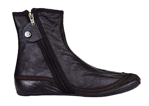 Our high-quality leather khuff aka khuffain are hand-crafted in India from soft halal goat hides. This model is designed for easy slip on with zipper. Perfect to wear at the mosque, zawiyah or tekke. These are also commonly worn by the dervish. In the sharia khuff are used for masah (wiping) over parts of the body with wet hands, whereas one can do masah over their khuff instead of removing them.