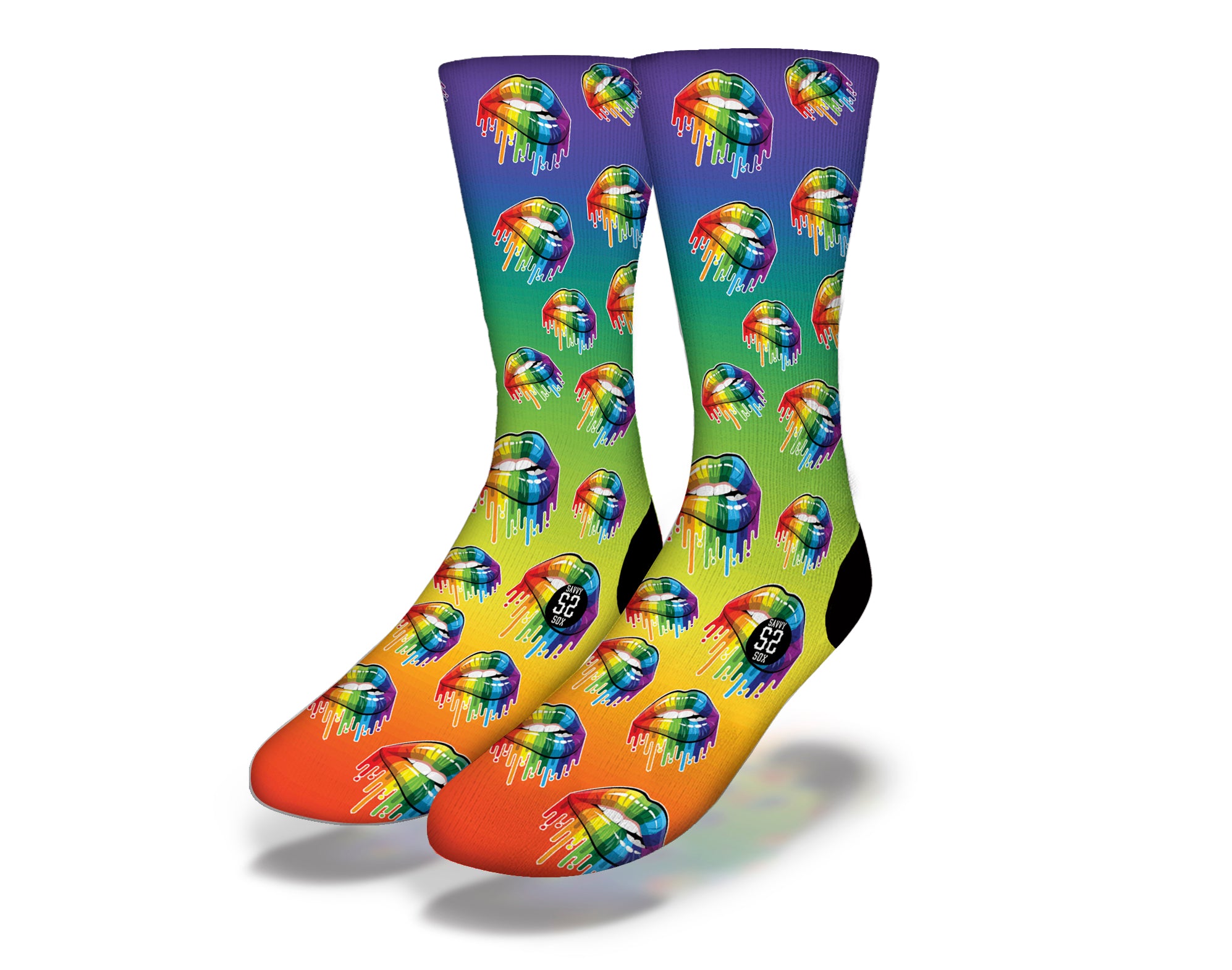Introducing our stunning LGBTQ Rainbow Lips socks, a perfect accessory for anyone looking to express their pride and support for the LGBTQ community. These socks feature a vibrant and eye-catching design that showcases colorful rainbow lips, symbolizing love, diversity, and acceptance. Whether you're attending a pride parade, a festival, or simply want to add a splash of color to your outfit, these socks are the ideal choice.
