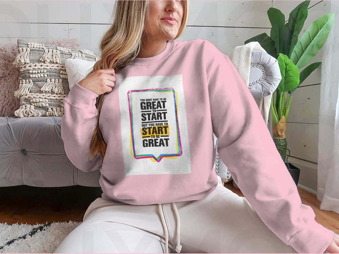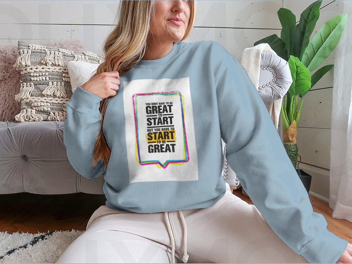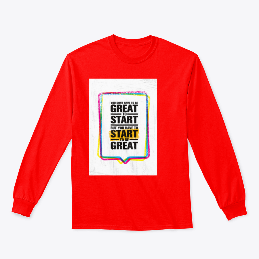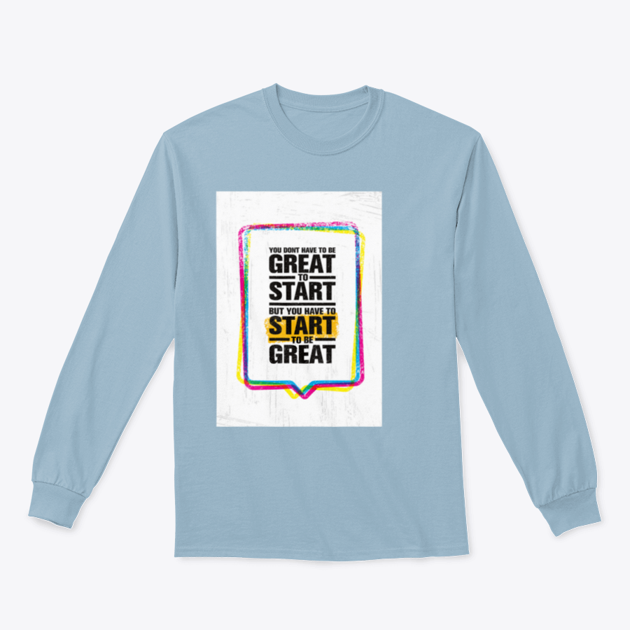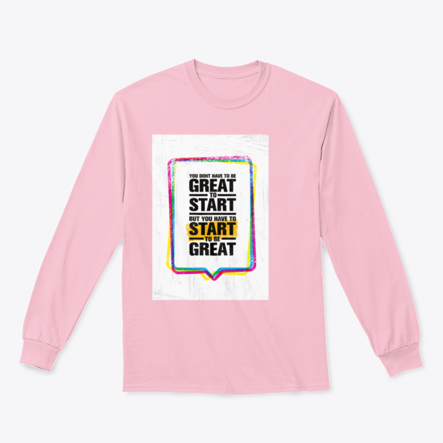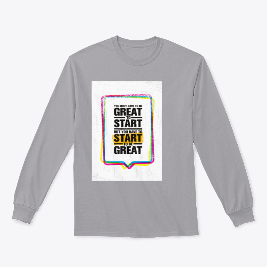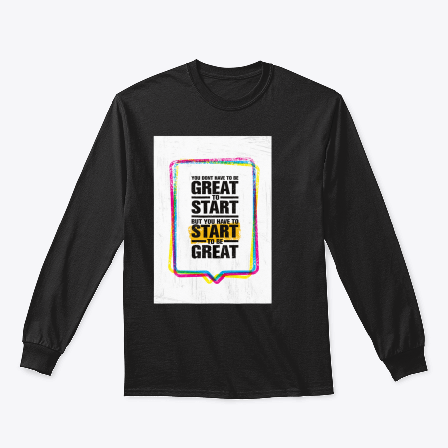 In summary, the 'You Don't Have To Be Great To Start But You Have To Start To Be Great' tee is more than just a shirt; it's a motivational tool that encourages you to take action. With its comfortable fit, stylish design, and practical features, this tee is a must-have addition to your wardrobe. Don't wait any longer—start your journey today!