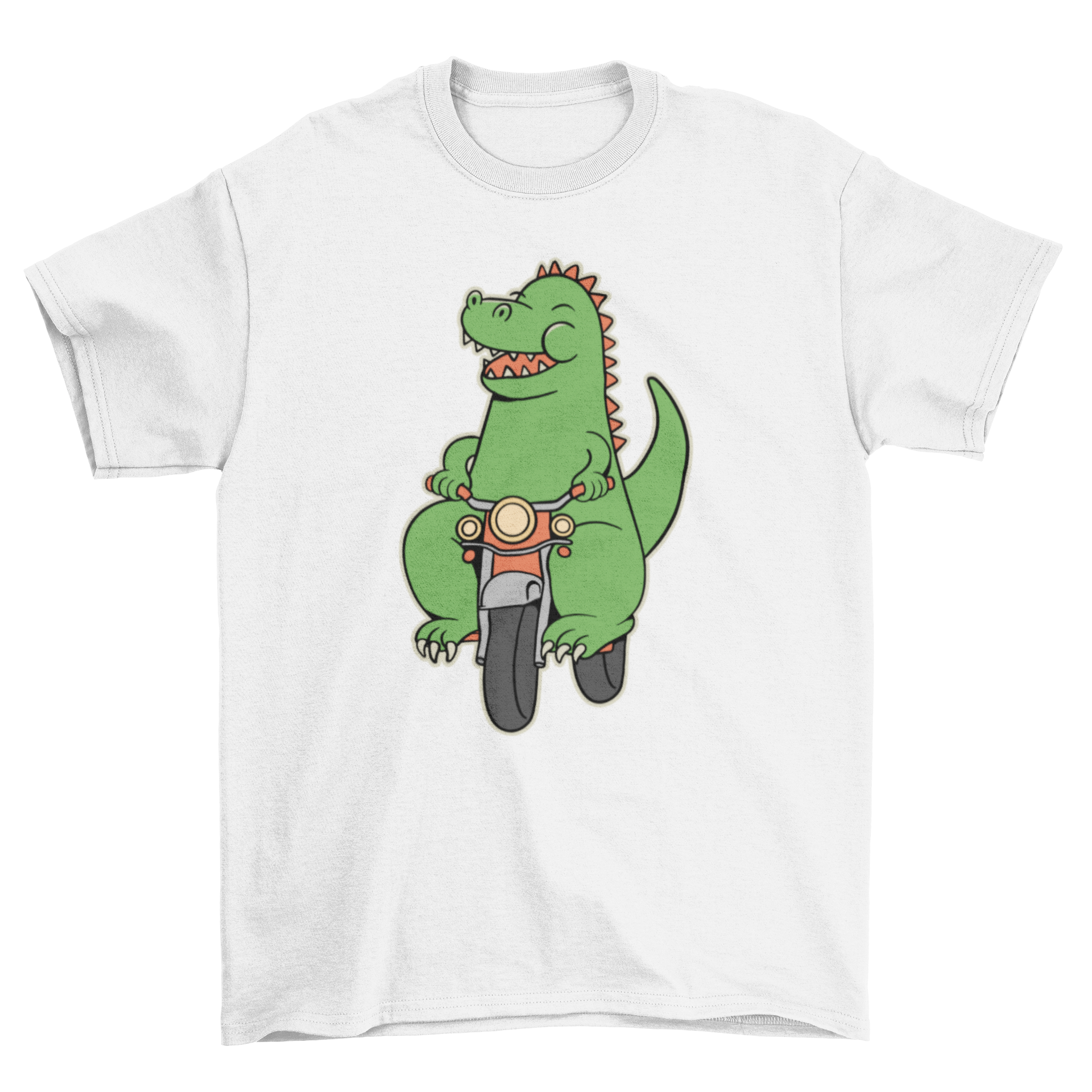 Introducing our Biker Dinosaur Cartoon T-Shirt, a must-have for anyone who loves dinosaurs and unique fashion! This playful t-shirt features a charming cartoon dinosaur riding a small motorcycle, making it a fun addition to your wardrobe. Whether you're a dinosaur enthusiast or simply looking for a quirky t-shirt, this design is sure to turn heads and spark conversations.