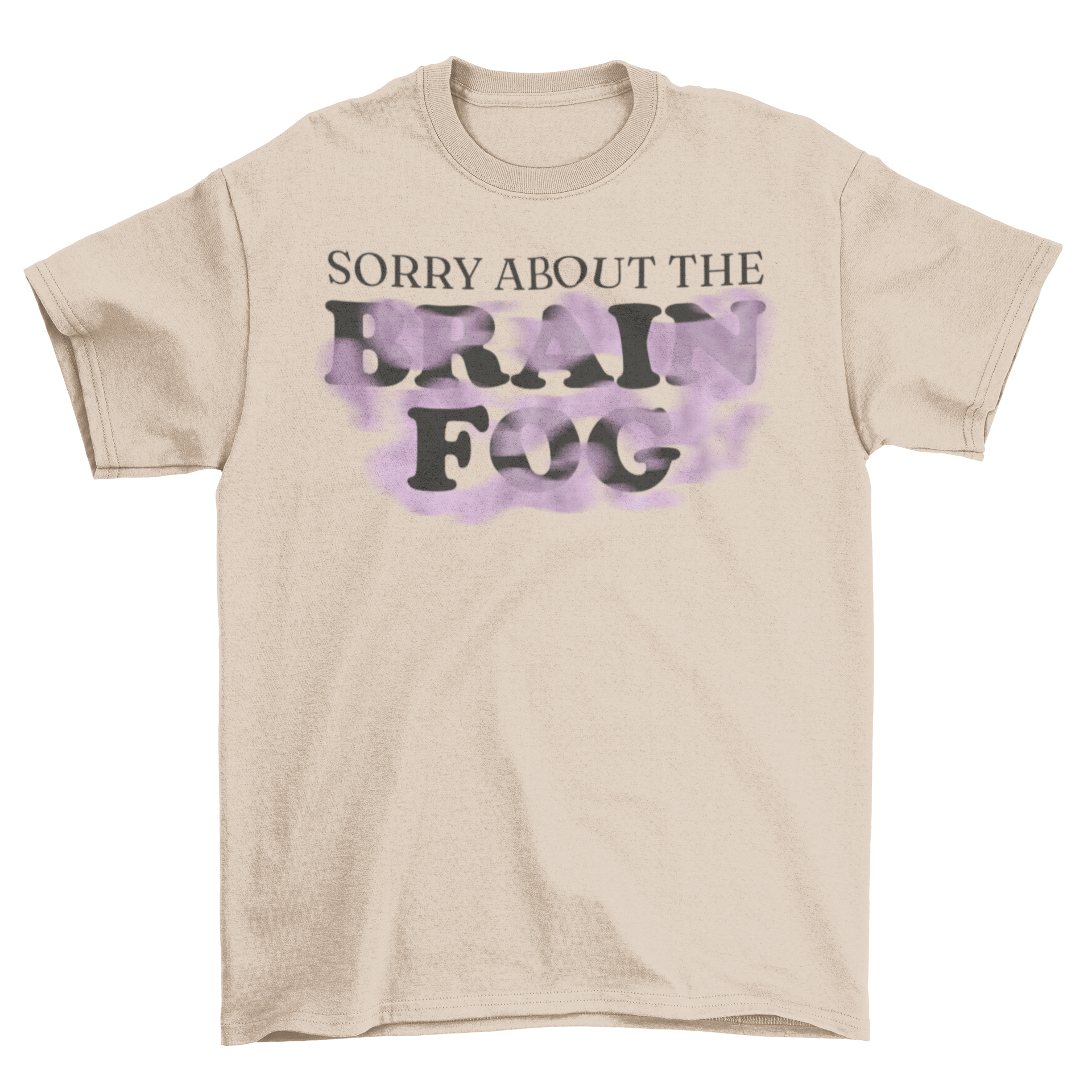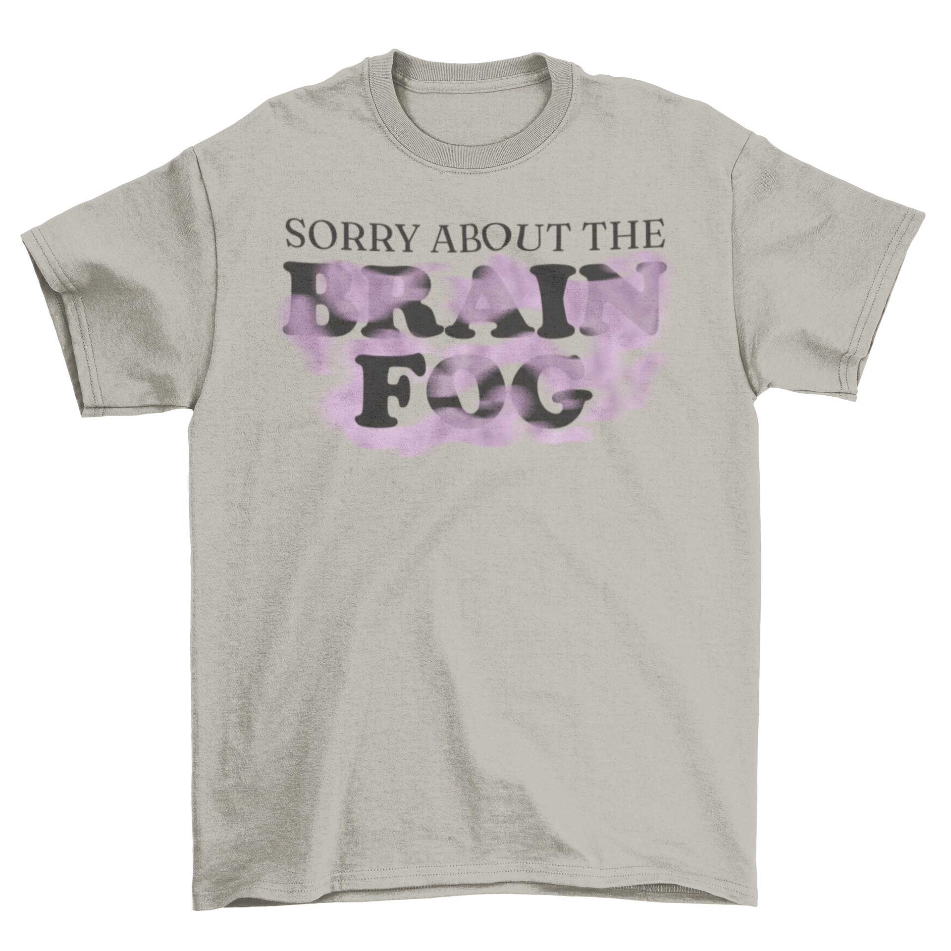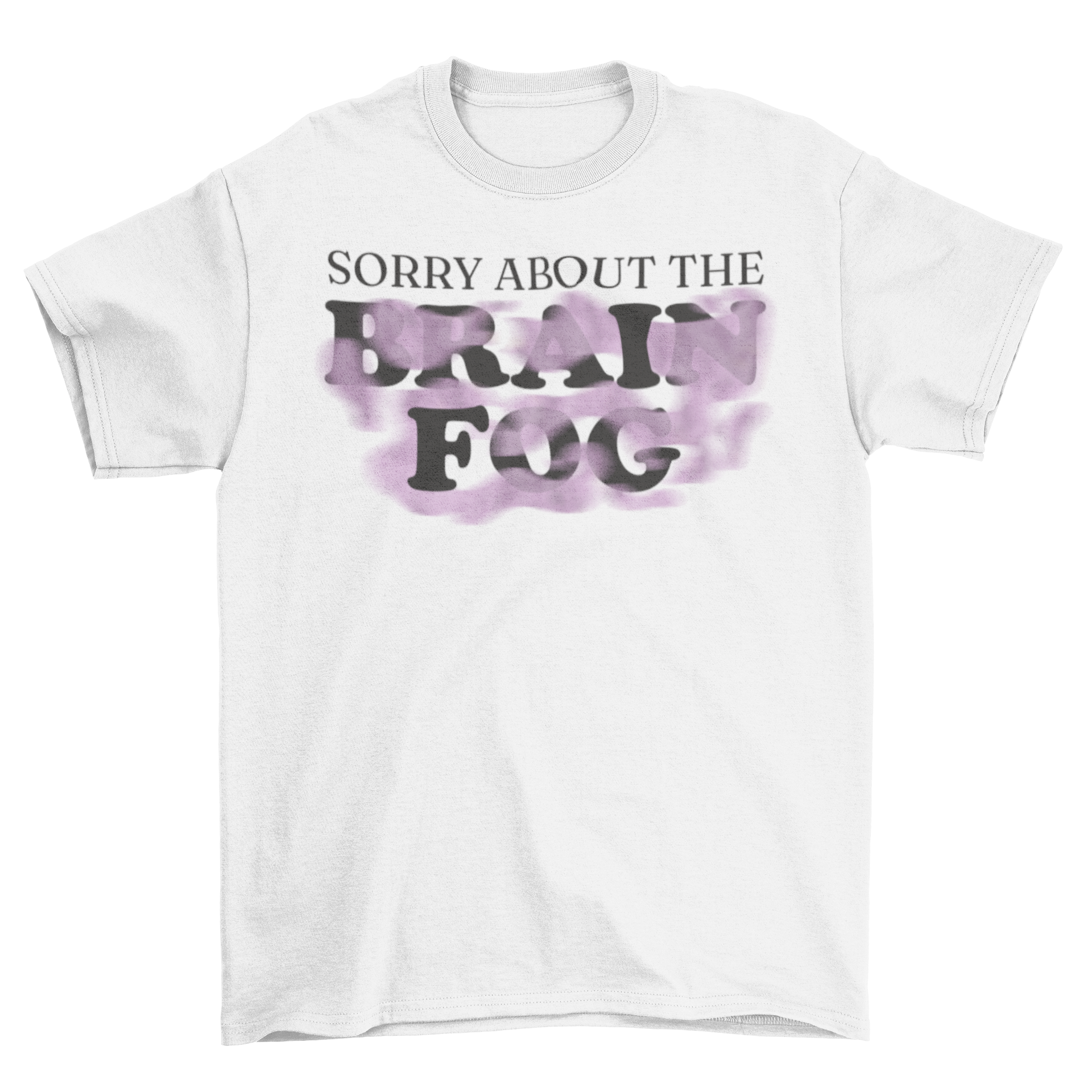 Introducing the Brain Fog Purple Mist T-Shirt, a stylish and comfortable addition to your wardrobe that perfectly captures the essence of those days when clarity seems just out of reach. Featuring the playful quote, "Sorry about the brain fog," this t-shirt is not just a piece of clothing; it's a statement. Whether you're lounging at home, running errands, or hanging out with friends, this t-shirt is designed to keep you looking effortlessly cool.