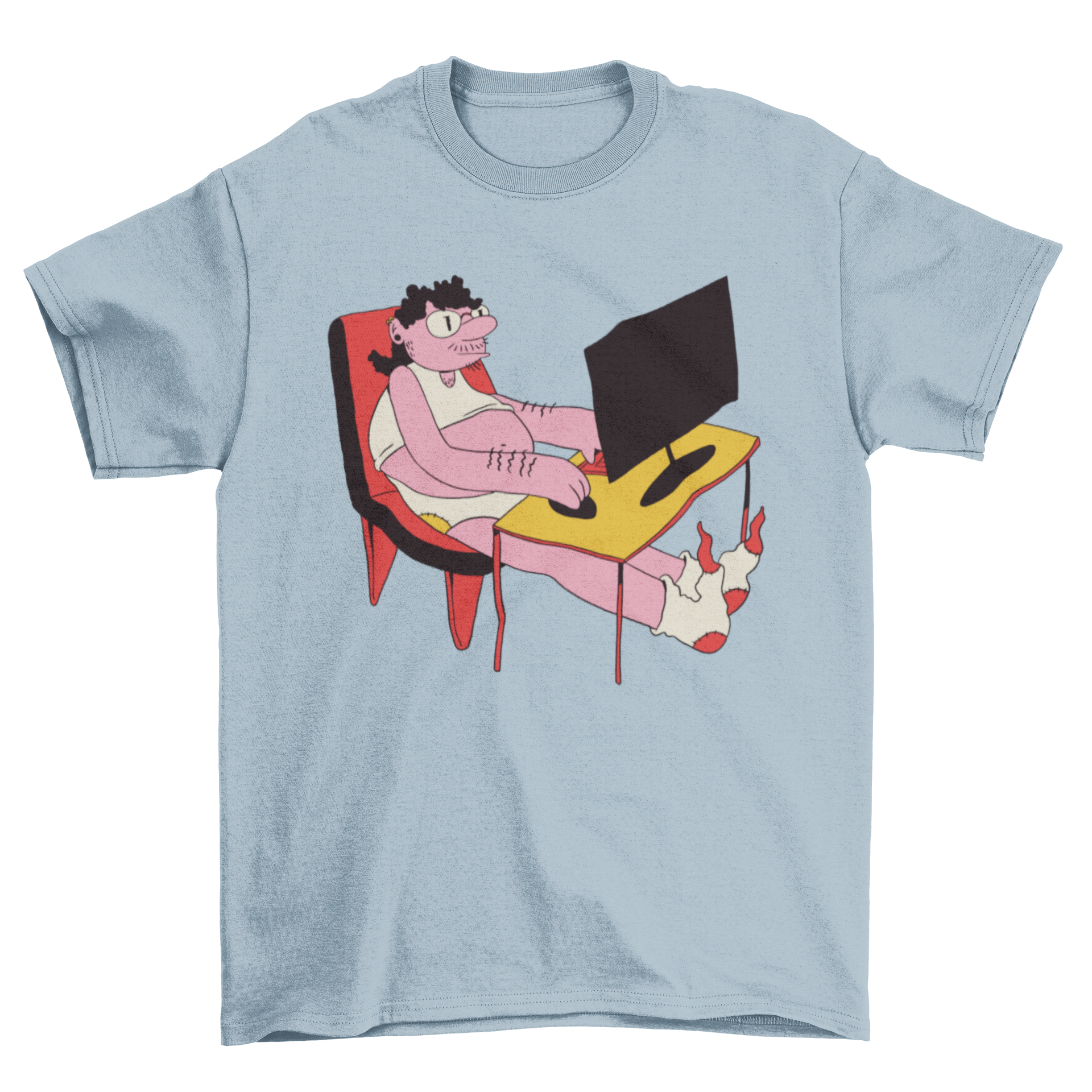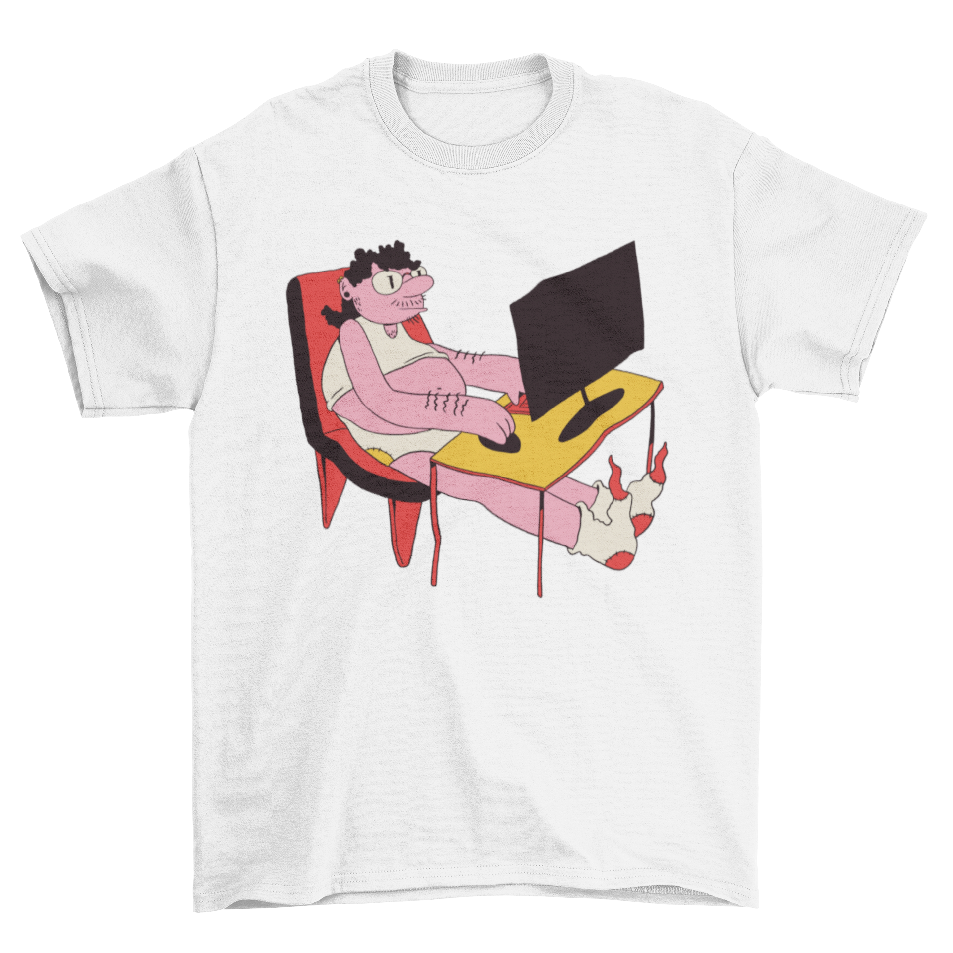 Introducing our stylish and comfortable Home Office T-Shirt, designed specifically for those who embrace the remote working lifestyle. This t-shirt features a fun and quirky design of a man working from home in his underwear, capturing the essence of casual work attire. Whether you're attending a video call or simply lounging around, this t-shirt is perfect for expressing your laid-back work-from-home vibe.