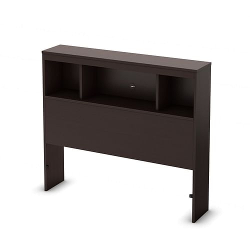 With its rich chocolate finish and sleek, contemporary lines, this Twin size Contemporary Bookcase Headboard in Chocolate Finish featuring three open storage spaces at your figertips (including one with hole wiring management) will enhance any bedroom. This superb 39 bookcase headboard is crafted from fine engineered-wood materials and is guaranteed to be free of any defects by a comprehensive five-year warranty. Assembly required.