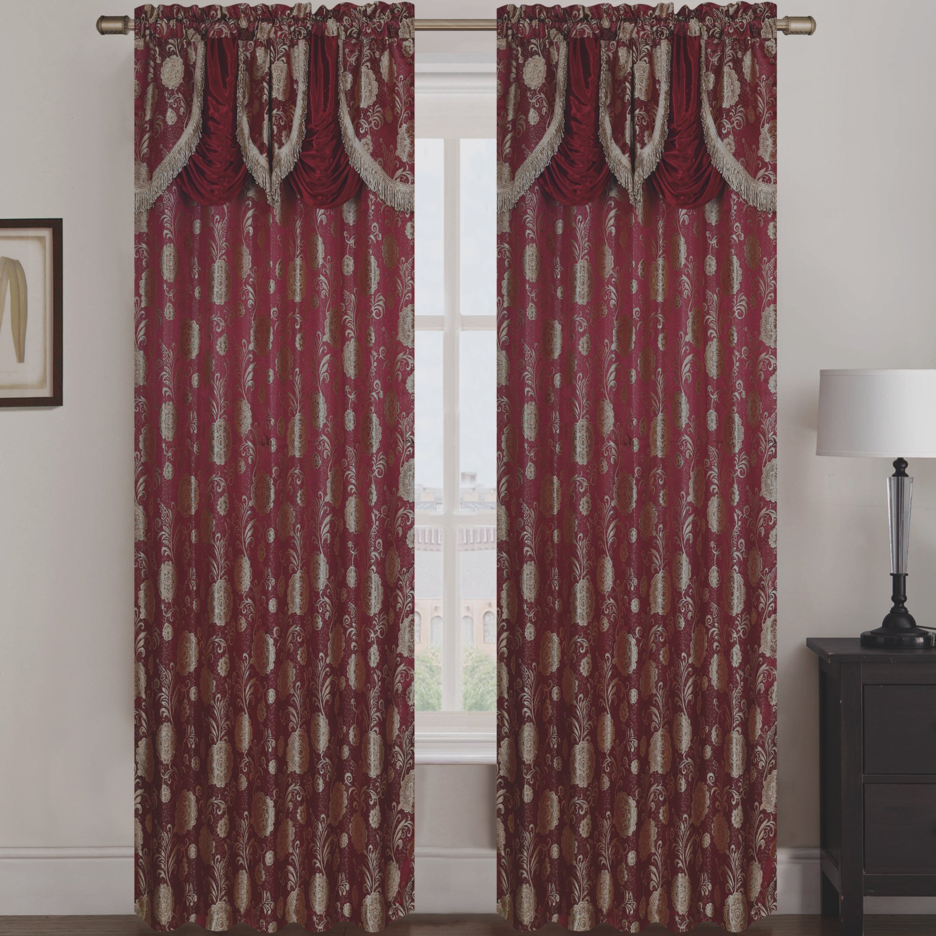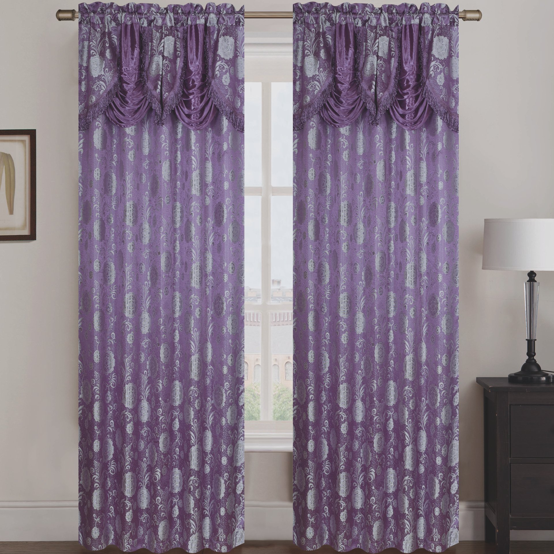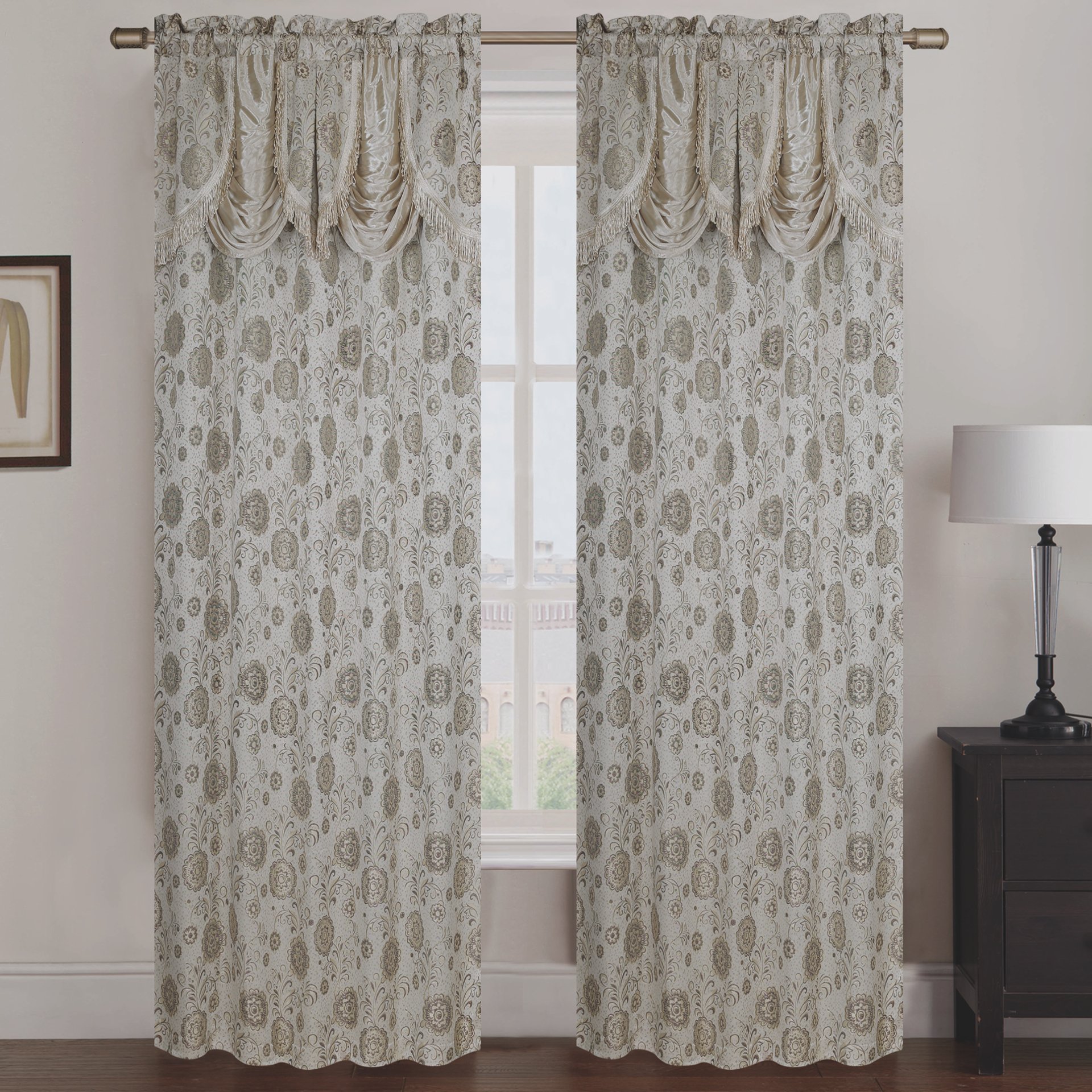 The Molly Jacquard Rod Pocket Panel with Attached Valance Set of Two is a stylish and functional addition to any home decor. Crafted from high-quality jacquard fabric, these panels not only provide privacy but also enhance the aesthetic appeal of your living space. Each panel measures 54 inches in width, and with a combined width of 108 inches, they are perfect for larger windows or sliding doors. The 84-inch height ensures that they drape beautifully, offering full coverage while allowing natural light to filter through. The attached valance adds an extra touch of elegance, making these panels suitable for both formal and casual settings.