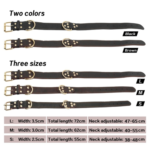 Type: Collars Collar Type: Basic Collars Pattern: Solid Material: Leather Season: All Seasons Type: Dogs Feature: durable Material: Real leather Colors: Brown/Black Gender: Unisex Applicable Breeds: Medium Large Dogs Usage: Walking ,Training