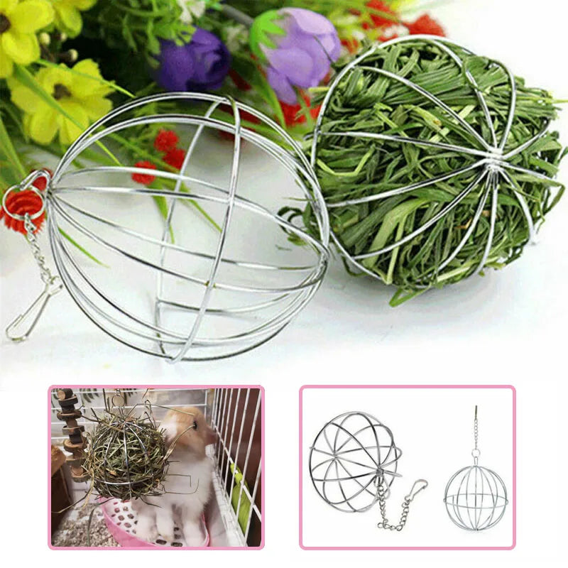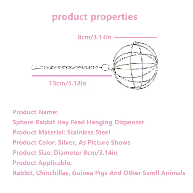 The unique sphere design of this hay feeder not only adds a modern touch to your pet's habitat but also enhances functionality. The shape allows for easy access to hay, encouraging your pets to forage naturally. Additionally, the feeder comes with hanging iron hooks, making it simple to attach to cages or enclosures. This feature ensures that the feeder stays securely in place, preventing spills and messes.