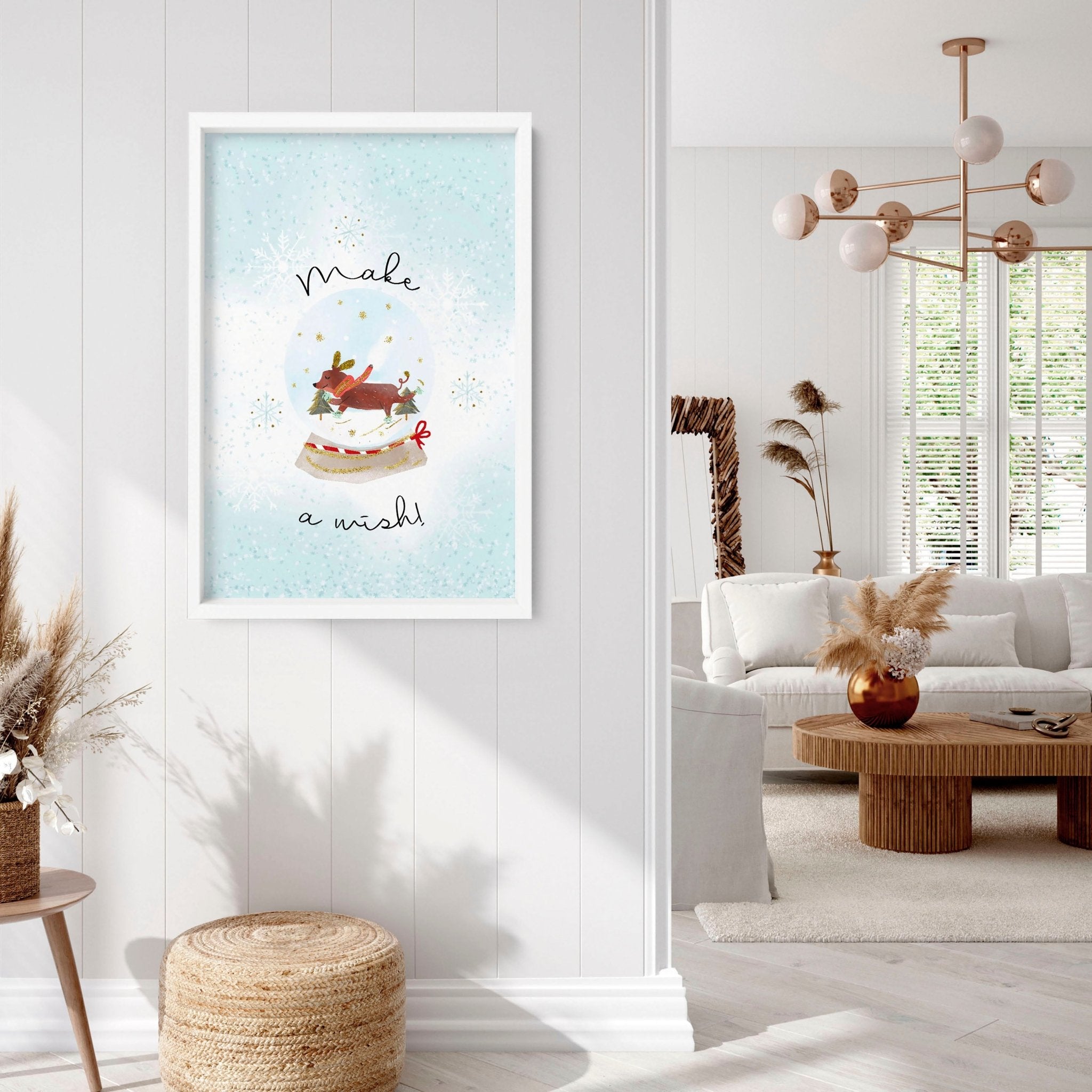 Embrace the magic of the holiday season with our Christmas wall art print. Let the enchanting snowy background and the inspiring 'Make a Wish' quote fill your home with warmth and wonder. Order your print today and bring a touch of festive enchantment to your space. Perfect for gifting or as a delightful addition to your own holiday decor, this wall hanging decoration is sure to be a conversation starter and a cherished piece for years to come.