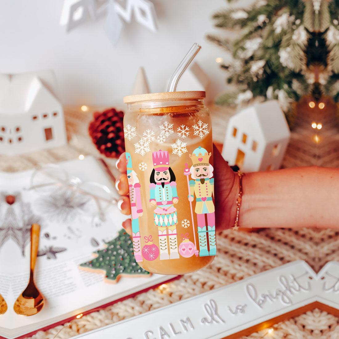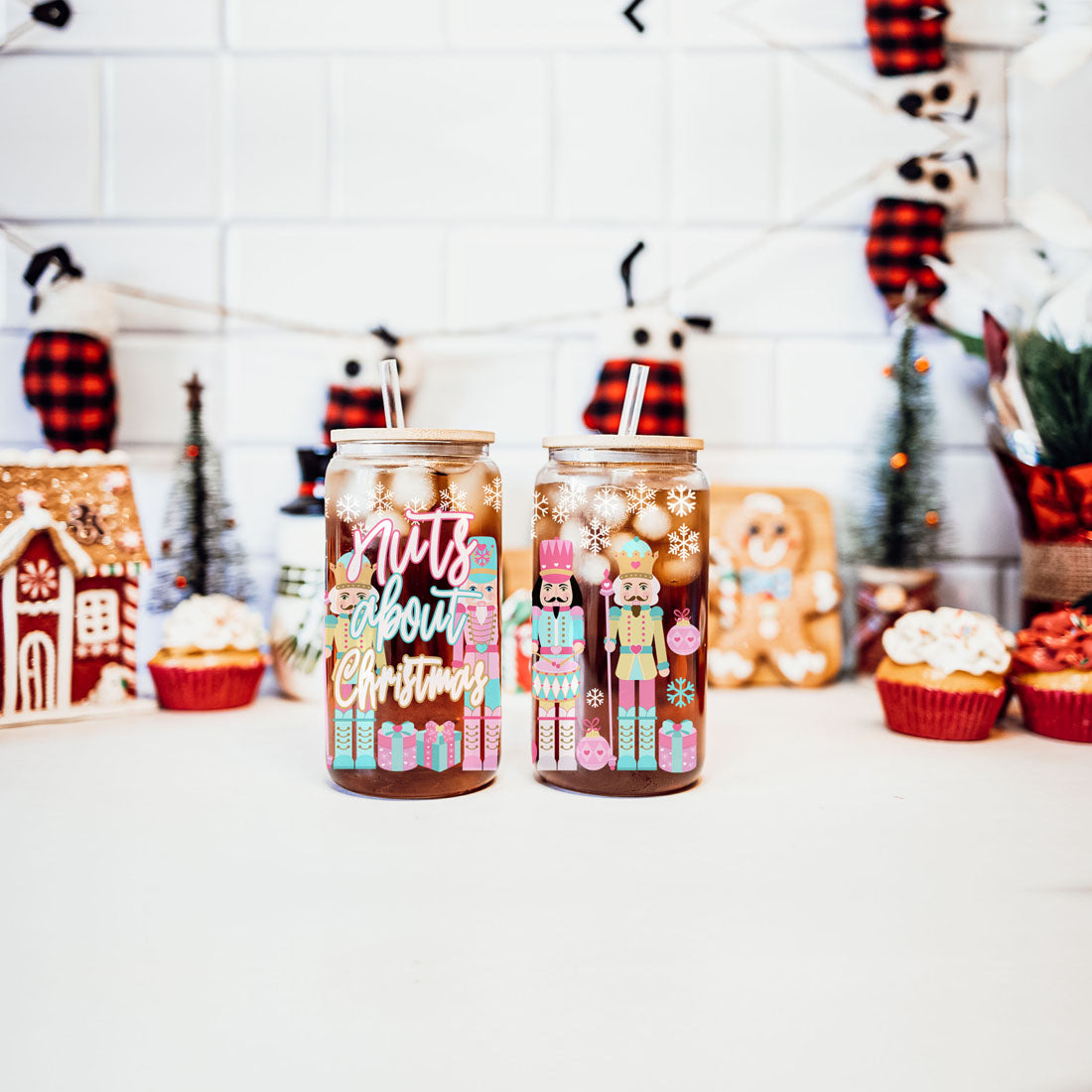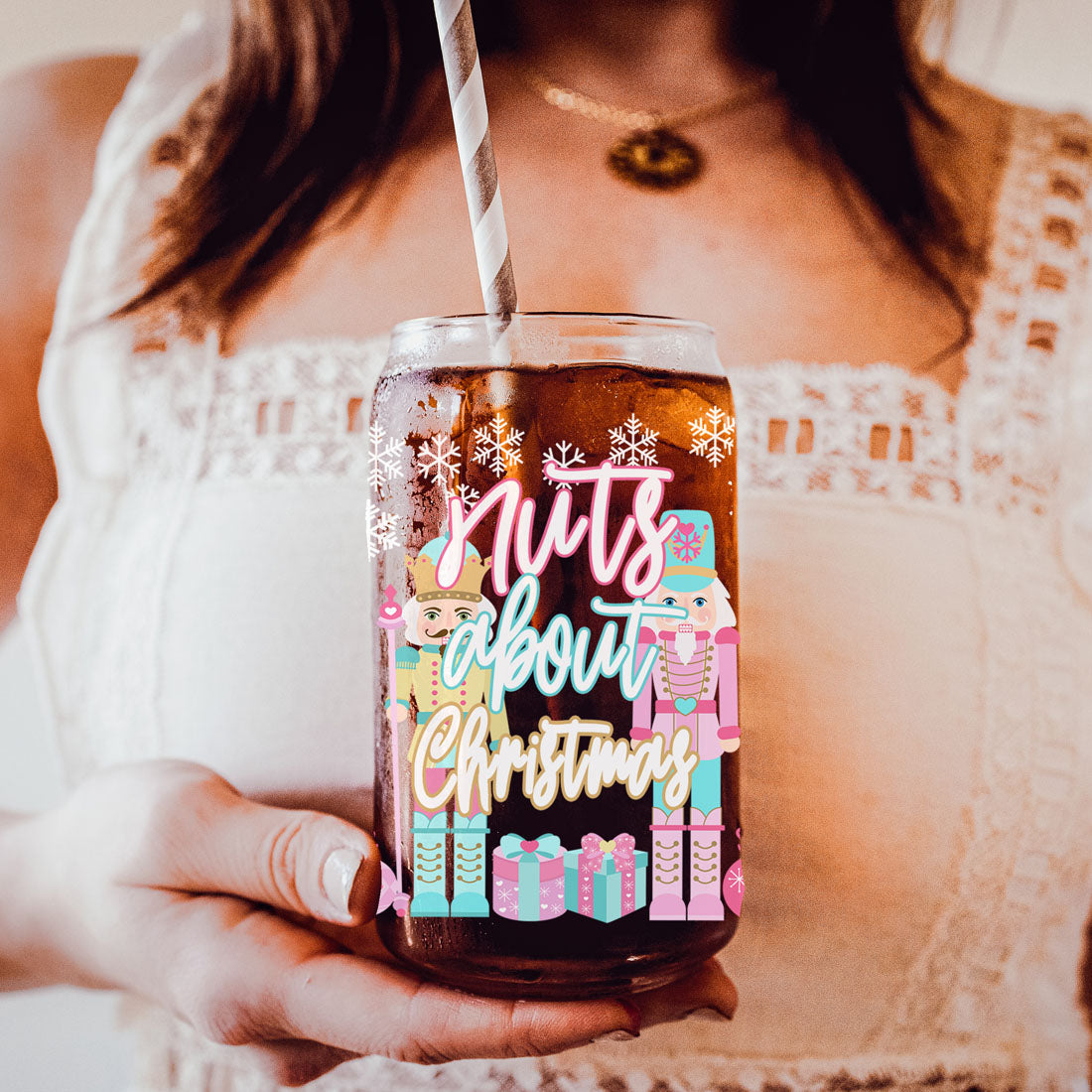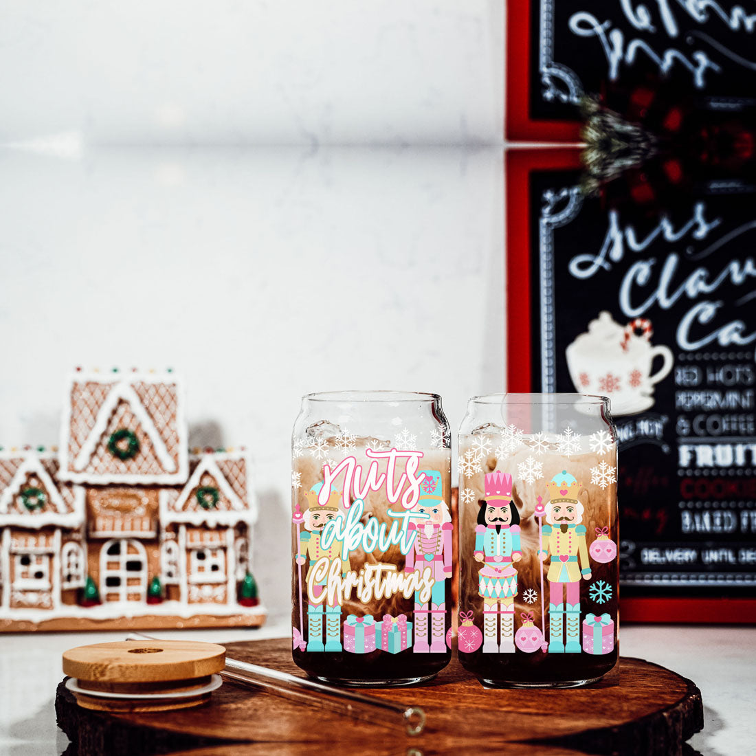 Introducing the Nuts About Christmas - Nutcracker Pastel, a charming glass cup that embodies the spirit of the holiday season. With its delightful pastel nutcracker graphics, this cup adds a whimsical touch to your festive drinks, making every sip a celebration of joy and merriment. Whether you're enjoying a cozy cup of hot cocoa, a refreshing spiced cider, or a festive cocktail, this beautifully designed cup is perfect for embracing the magic of Christmas.