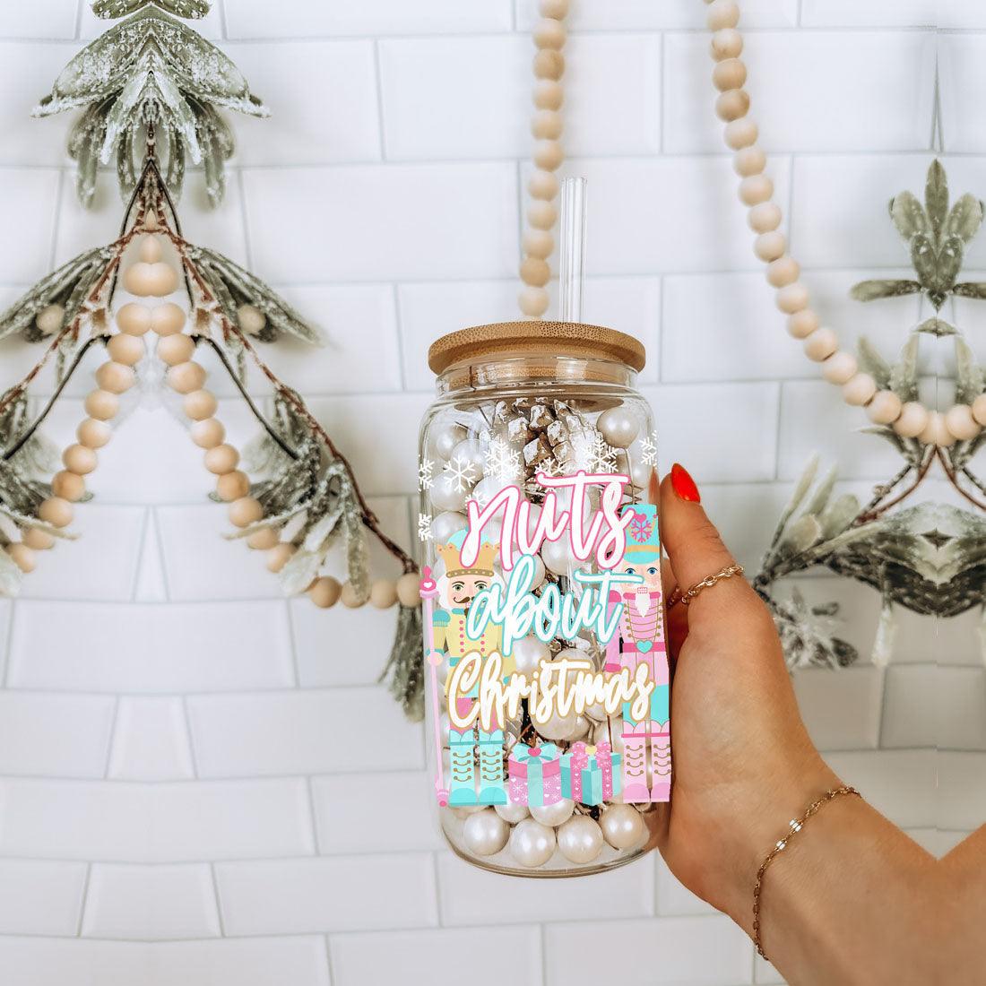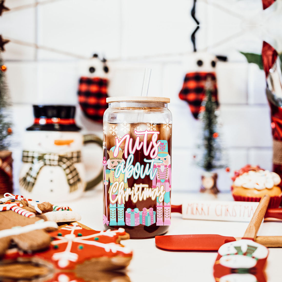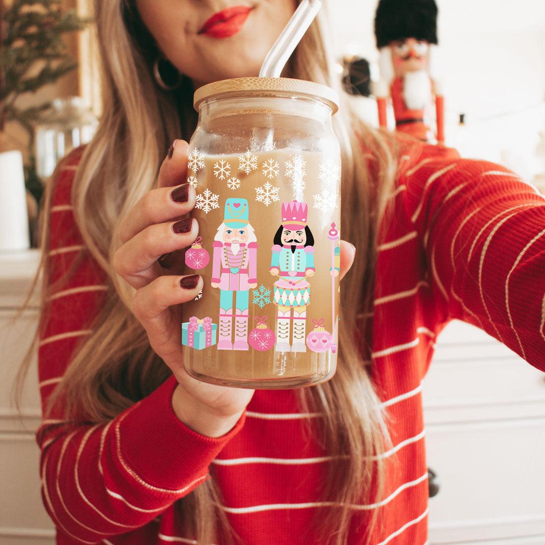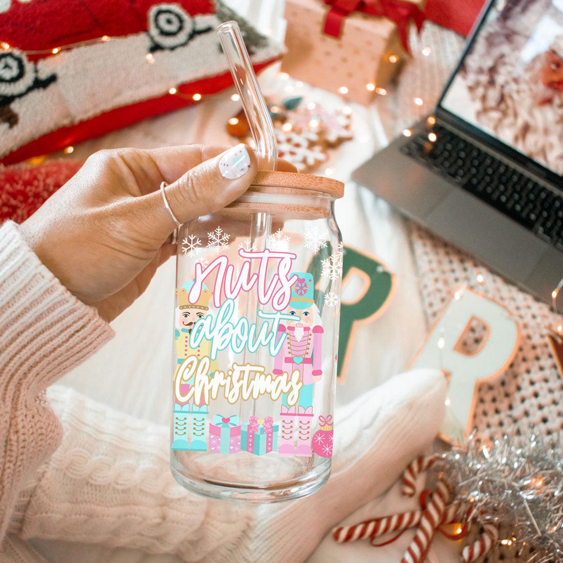 Introducing the Nuts About Christmas - Nutcracker Pastel, a charming glass cup that embodies the spirit of the holiday season. With its delightful pastel nutcracker graphics, this cup adds a whimsical touch to your festive drinks, making every sip a celebration of joy and merriment. Whether you're enjoying a cozy cup of hot cocoa, a refreshing spiced cider, or a festive cocktail, this beautifully designed cup is perfect for embracing the magic of Christmas.