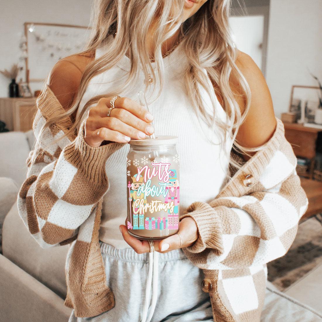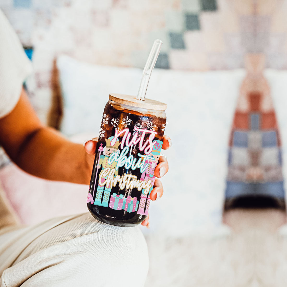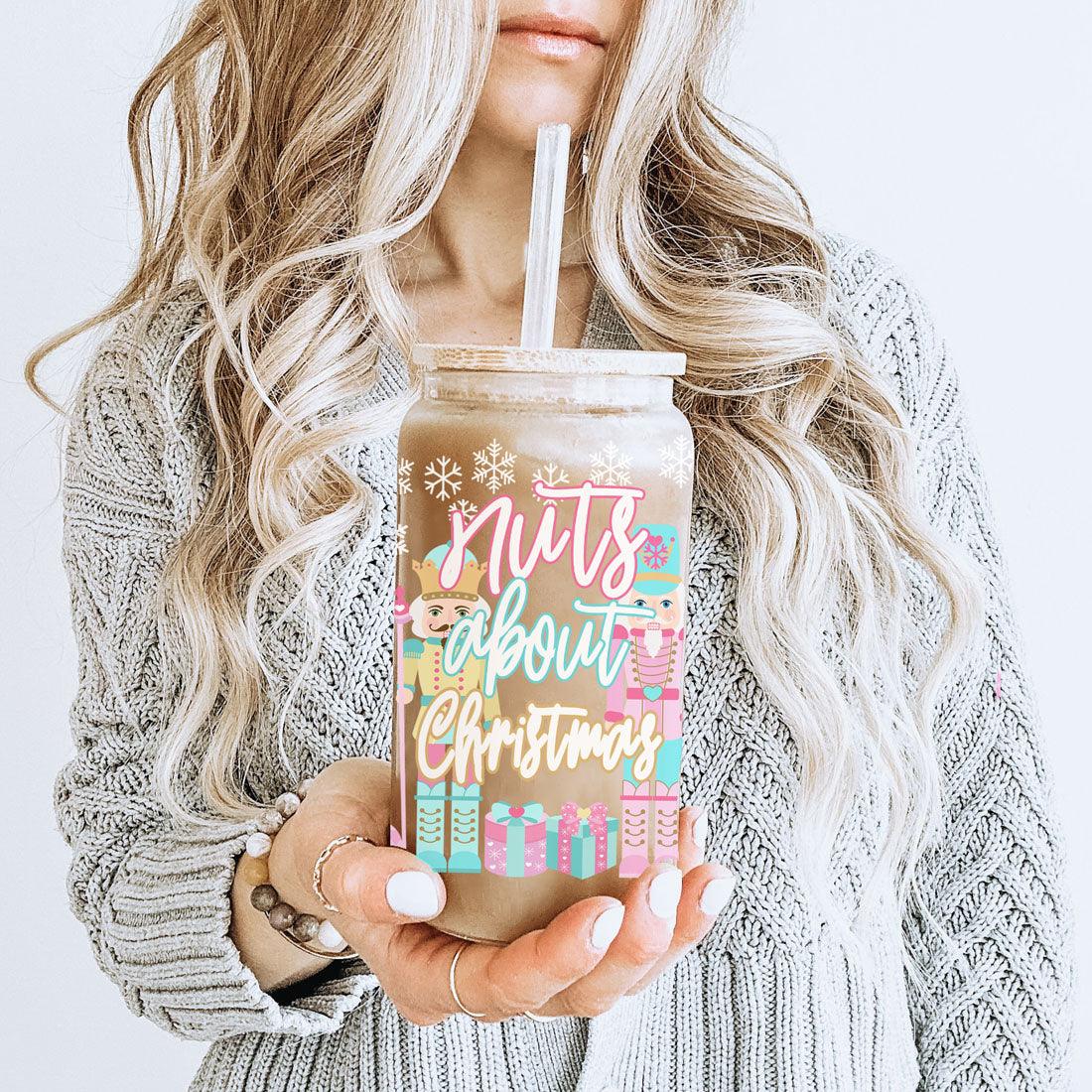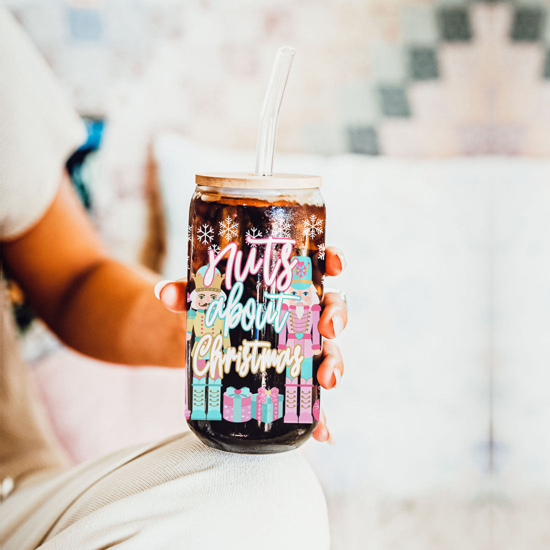 Introducing the Nuts About Christmas - Nutcracker Pastel, a charming glass cup that embodies the spirit of the holiday season. With its delightful pastel nutcracker graphics, this cup adds a whimsical touch to your festive drinks, making every sip a celebration of joy and merriment. Whether you're enjoying a cozy cup of hot cocoa, a refreshing spiced cider, or a festive cocktail, this beautifully designed cup is perfect for embracing the magic of Christmas.
